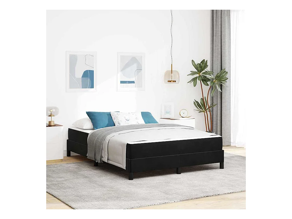 Letto a molle con materasso Nero 140 x 200 cm Velluto