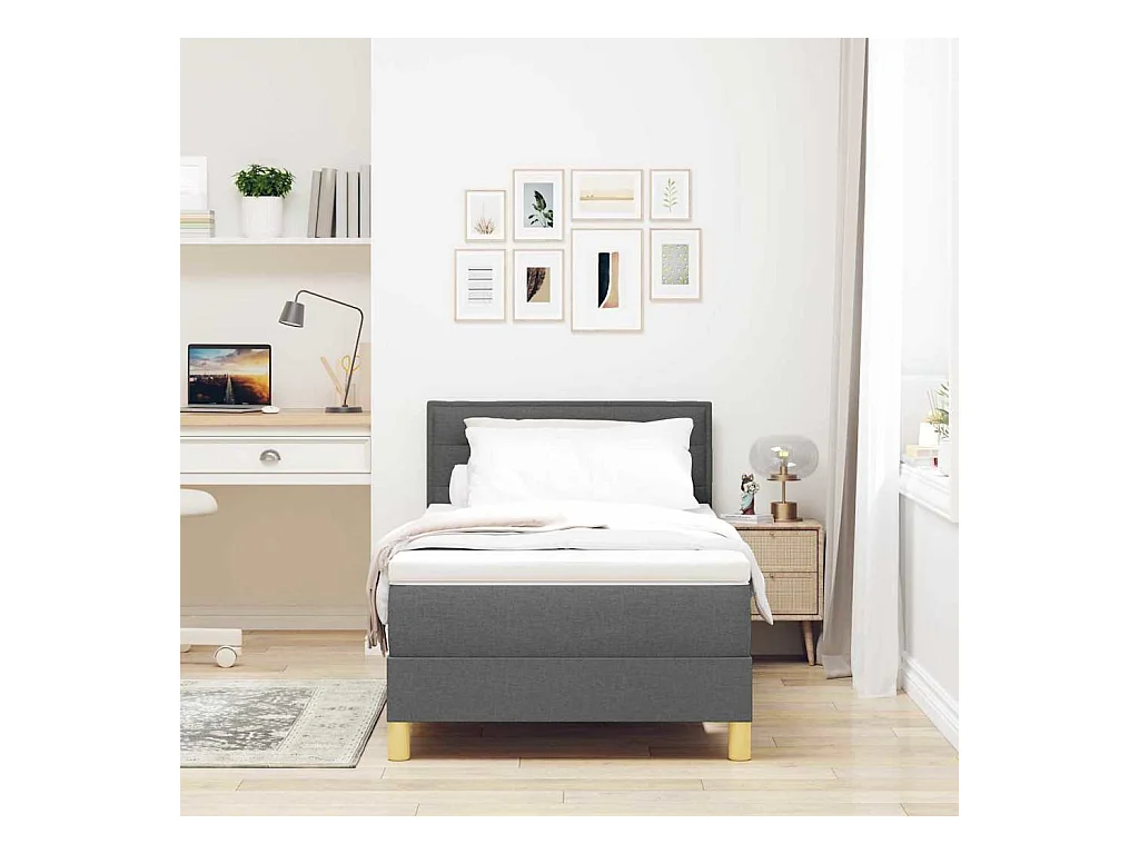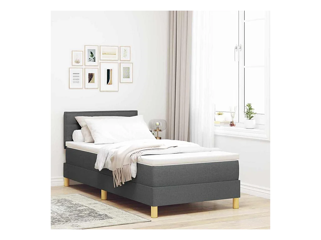 Letto a molle con materasso Tessuto grigio scuro 90 x 190 cm