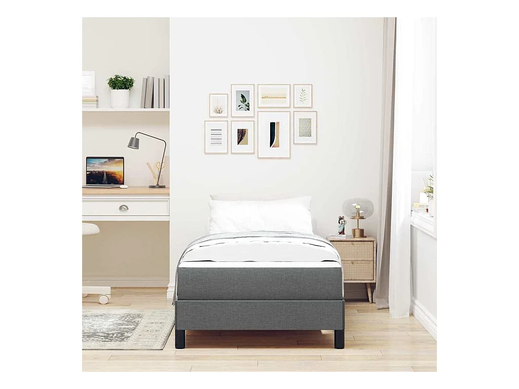 Letto a molle con materasso Tessuto grigio scuro 90 x 190 cm