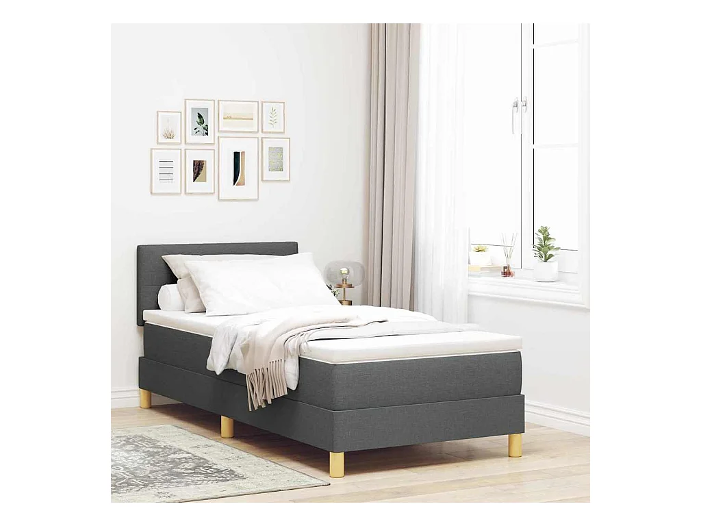Letto a molle con materasso Tessuto grigio scuro 90 x 190 cm