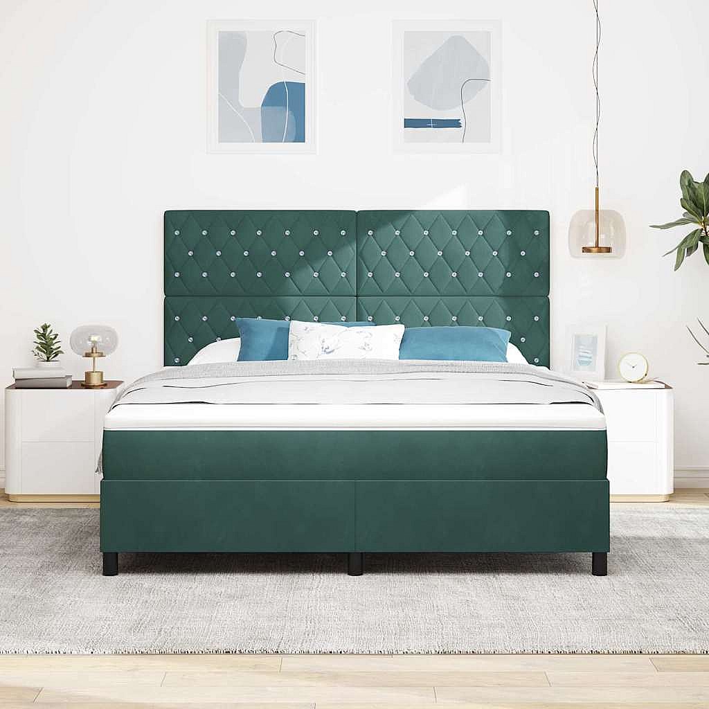 Letto a molle con materasso Verde scuro 180 x 200 cm Velluto