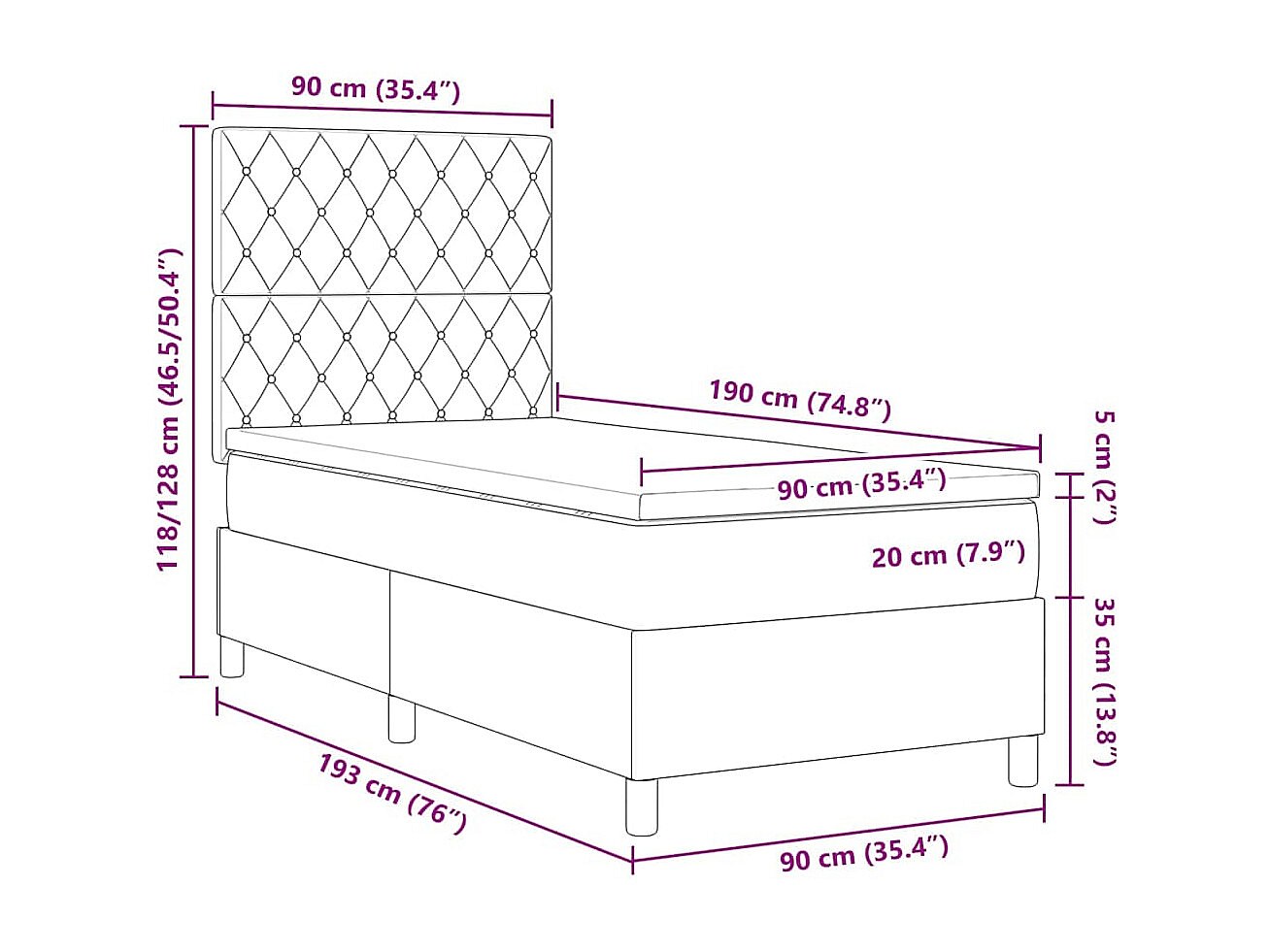 Letto a Molle con Materasso e LED Verde Scuro 90x190 cm Velluto