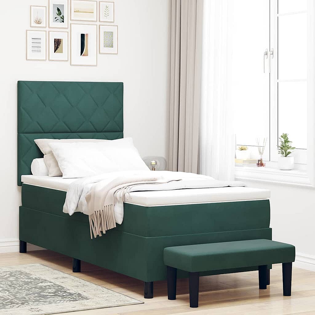Letto a molle con materasso Verde scuro 90 x 200 cm Velluto