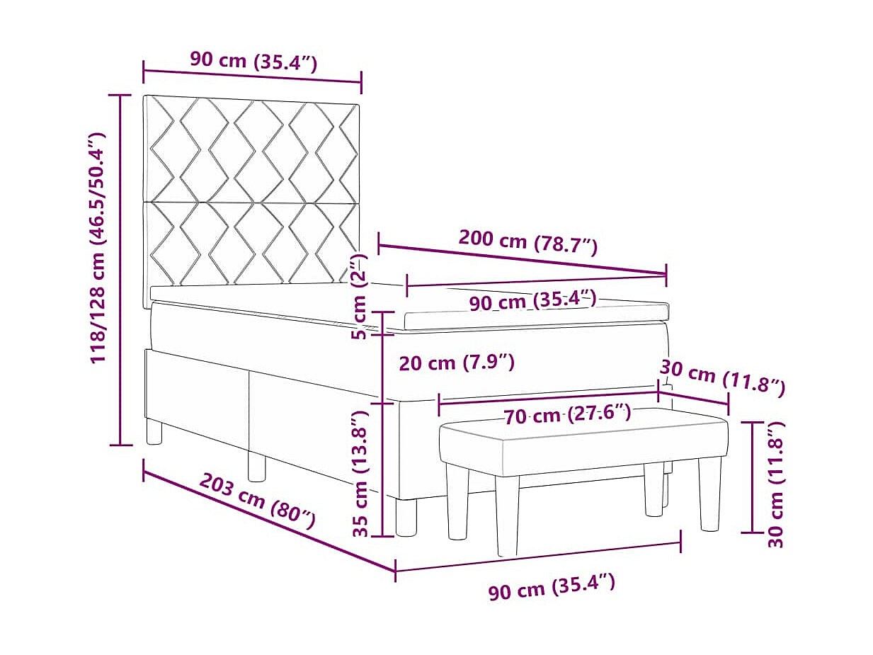 Letto a Molle con Materasso Verde scuro 90 x 200 cm Tessuto