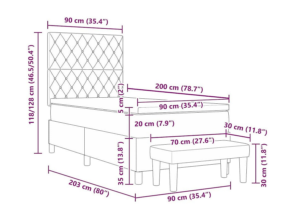 Letto a Molle con Materasso Verde scuro 90 x 200 cm Tessuto