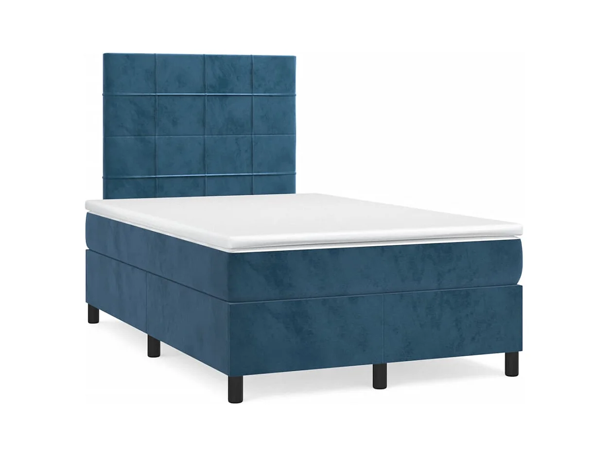 Letto a Molle Materasso e LED Blu Scuro 120x190 cm in Velluto