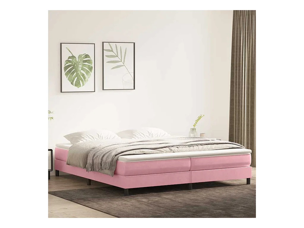 Letto a Molle senza Materasso Rosa 200x210 cm in Velluto