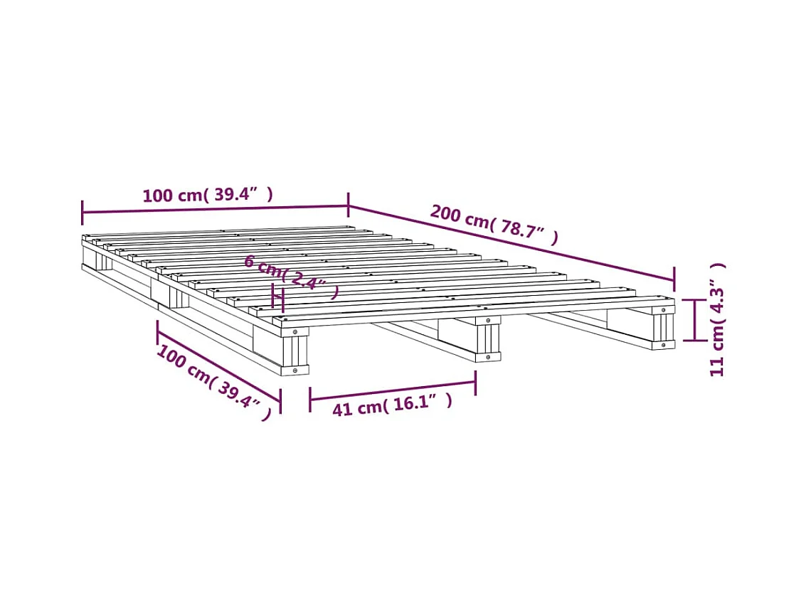 Letto a Pallet Bianco 100x200 cm in Legno Massello di Pino