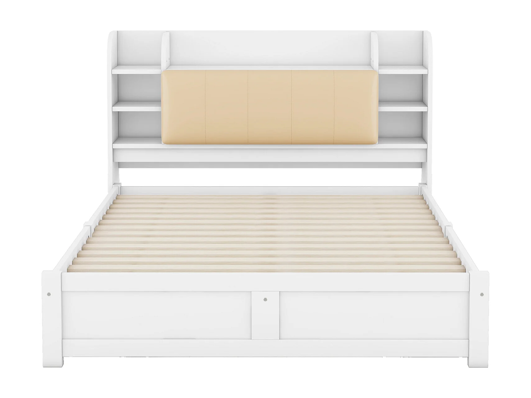 Letto a piattaforma 160x200 cm, testiera retrattile, quattro cassetti e vani portaoggetti - Bianco