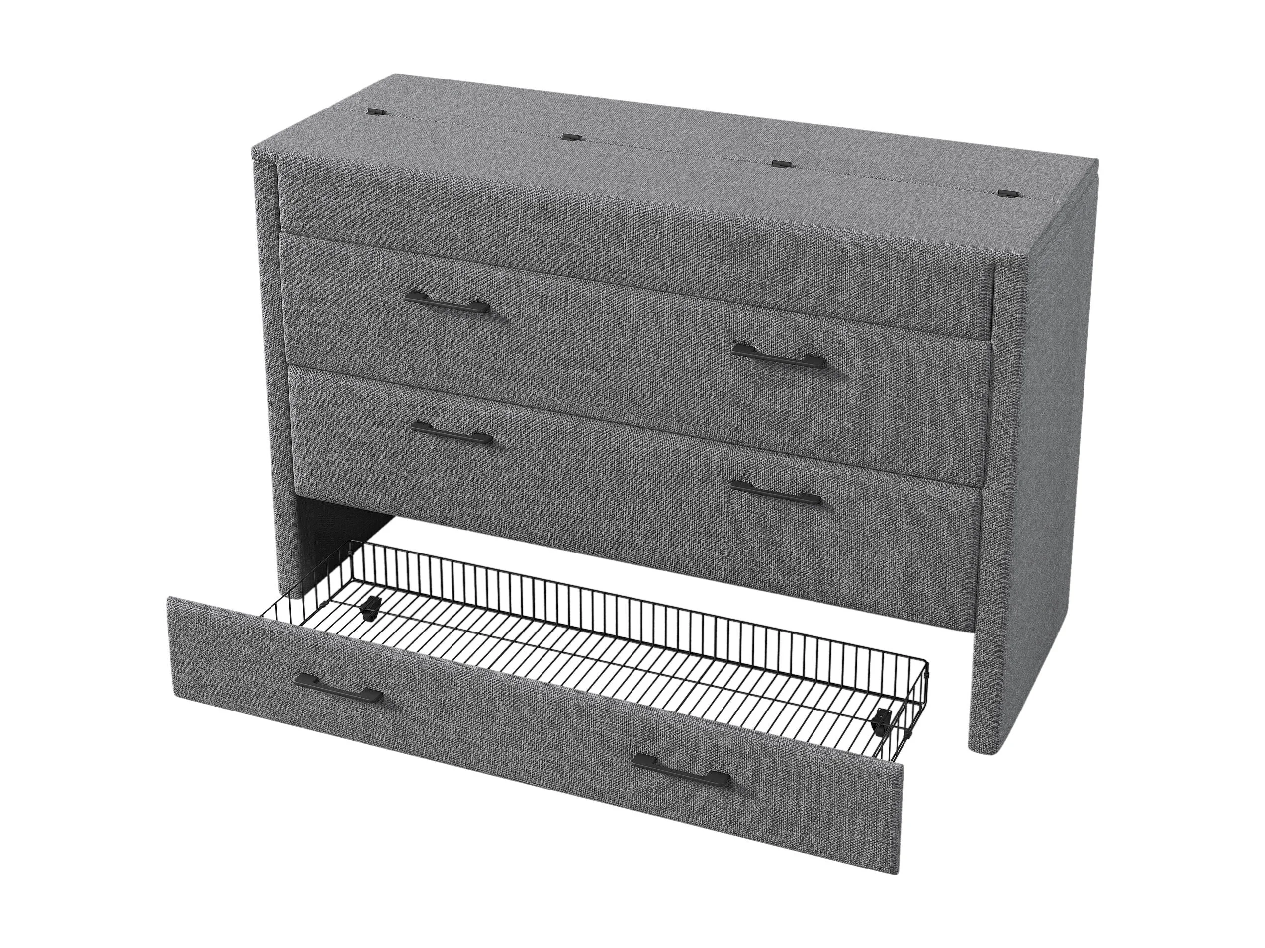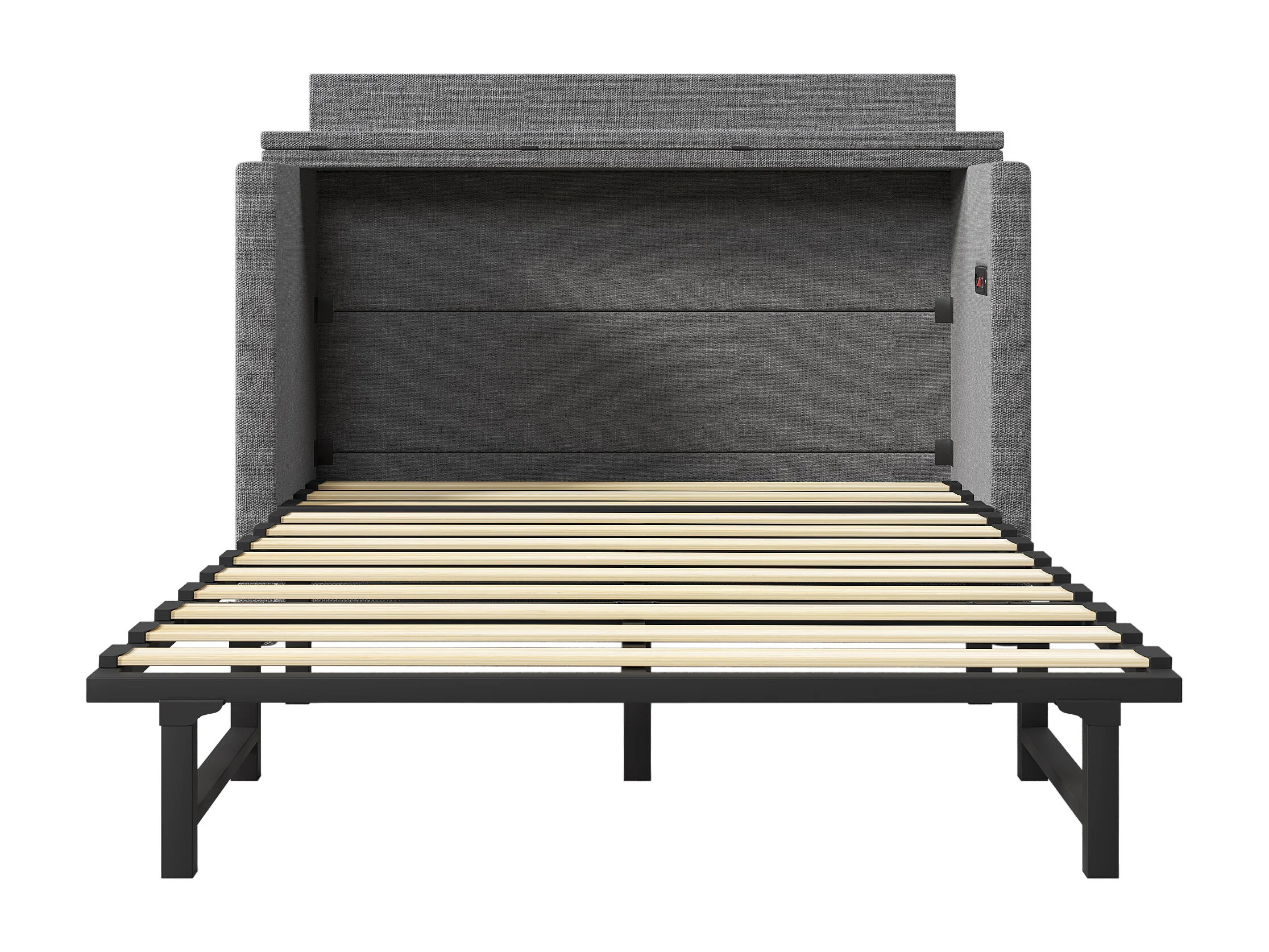 Letto a scomparsa 140x200 cm con 1 cassetto, USB e Type-C - Tessuto di lino grigio