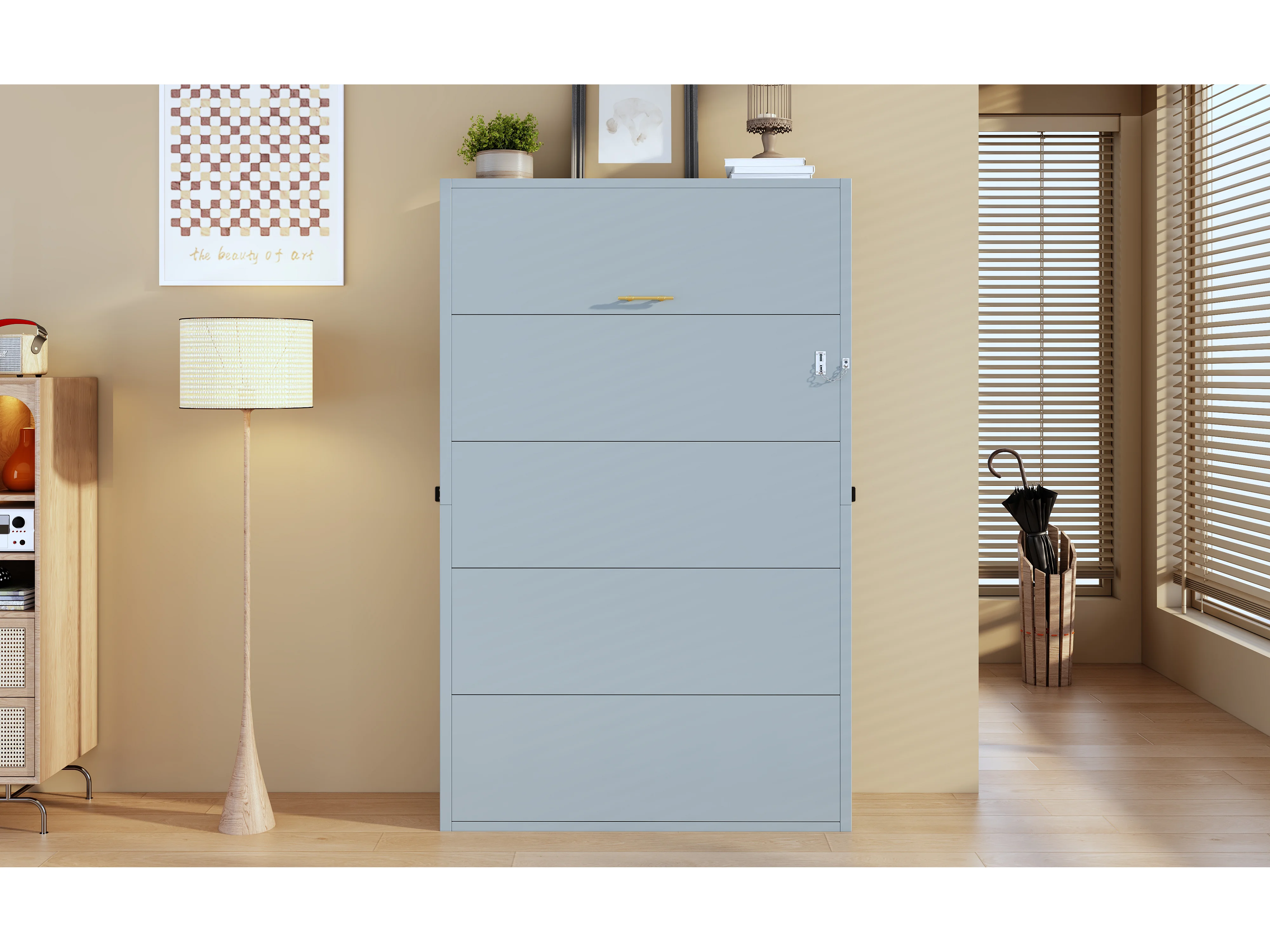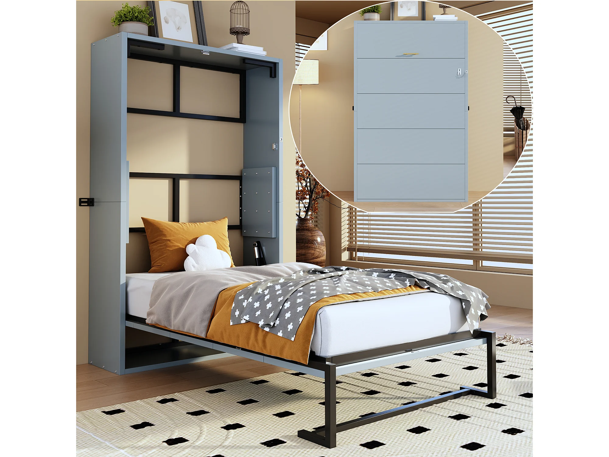 Letto a scomparsa da parete - 90 x 200 cm - struttura in metallo - montaggio a parete - legno + metallo - grigio