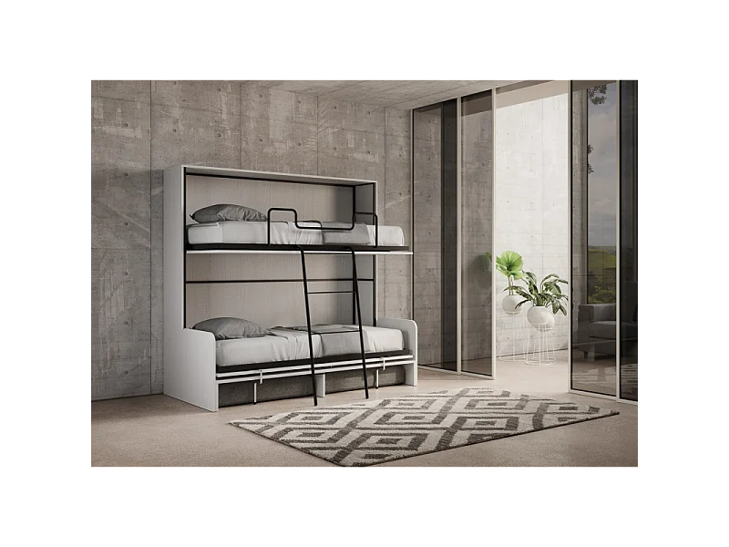 Letto a scomparsa doppio orizzontale Kando Sofà Frassino - Bianco Frassino