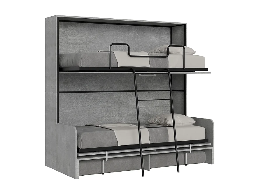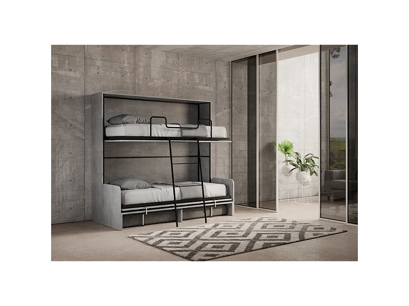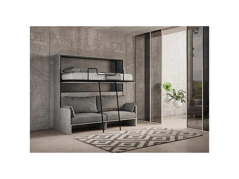 Letto a scomparsa doppio orizzontale Kando Sofà Frassino - Cemento
