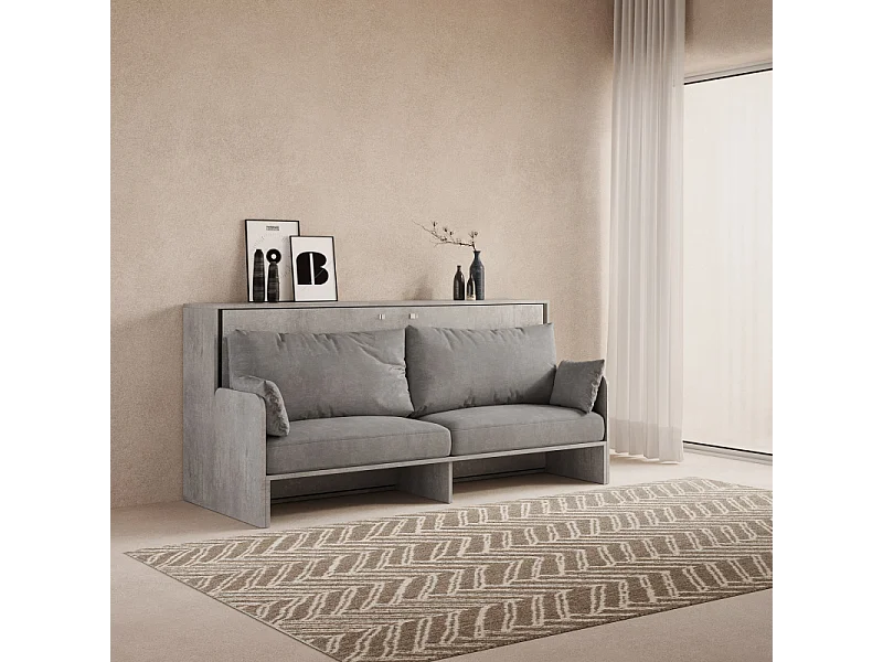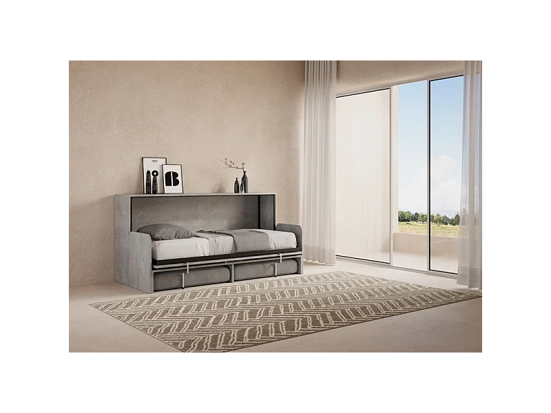 Letto a scomparsa singolo orizzontale Kando Sofà Frassino - Cemento