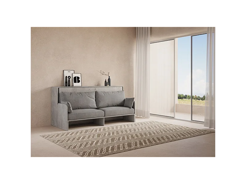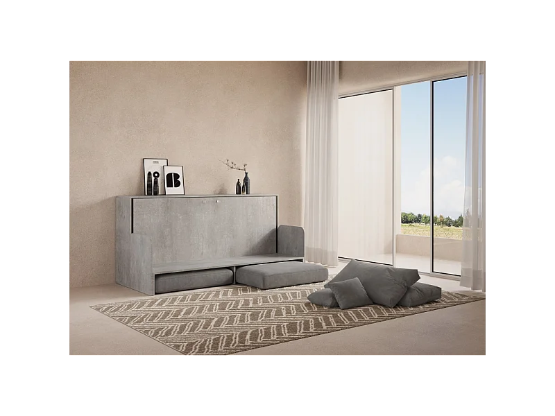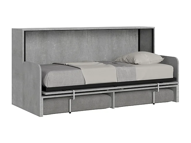 Letto a scomparsa singolo orizzontale Kando Sofà Frassino con materasso - Cemento