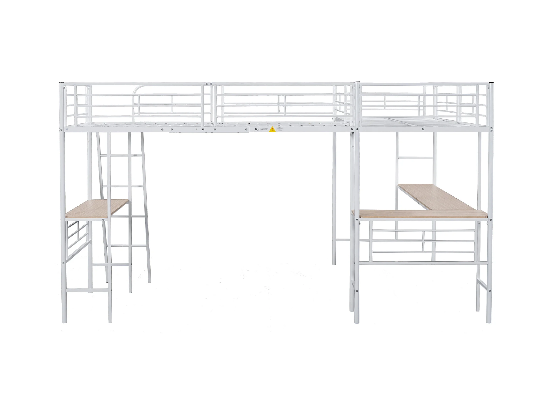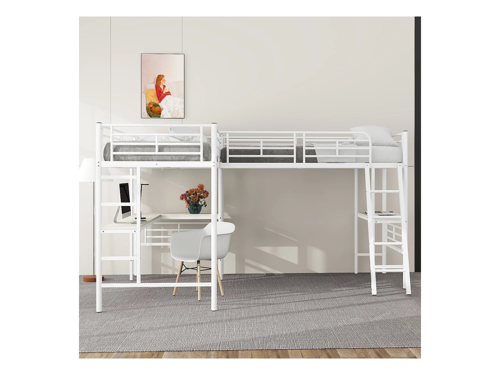 Letto a soppalco - 2 letti 90x200 cm - 2 scrivanie sotto il letto - bianco