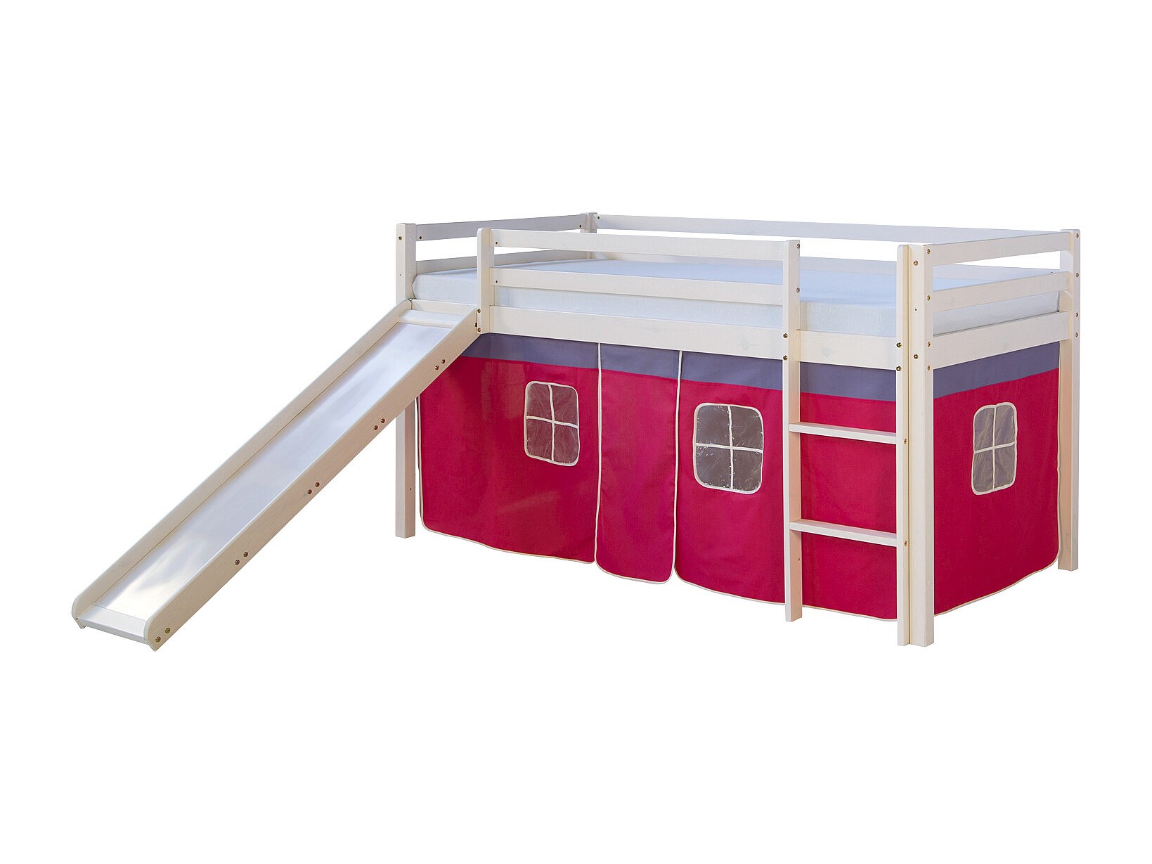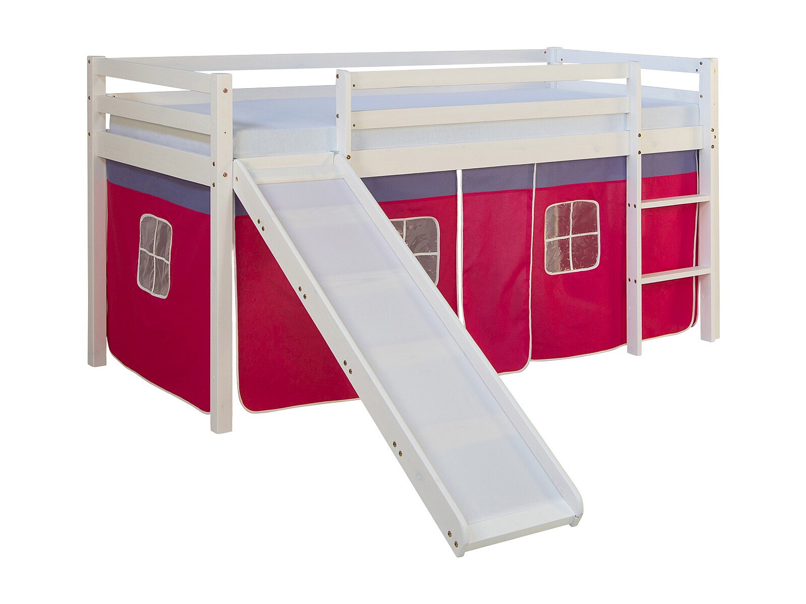 Letto a soppalco con scivolo 90x200 cm Legno di pino massiccio rosa Tenda tunnel