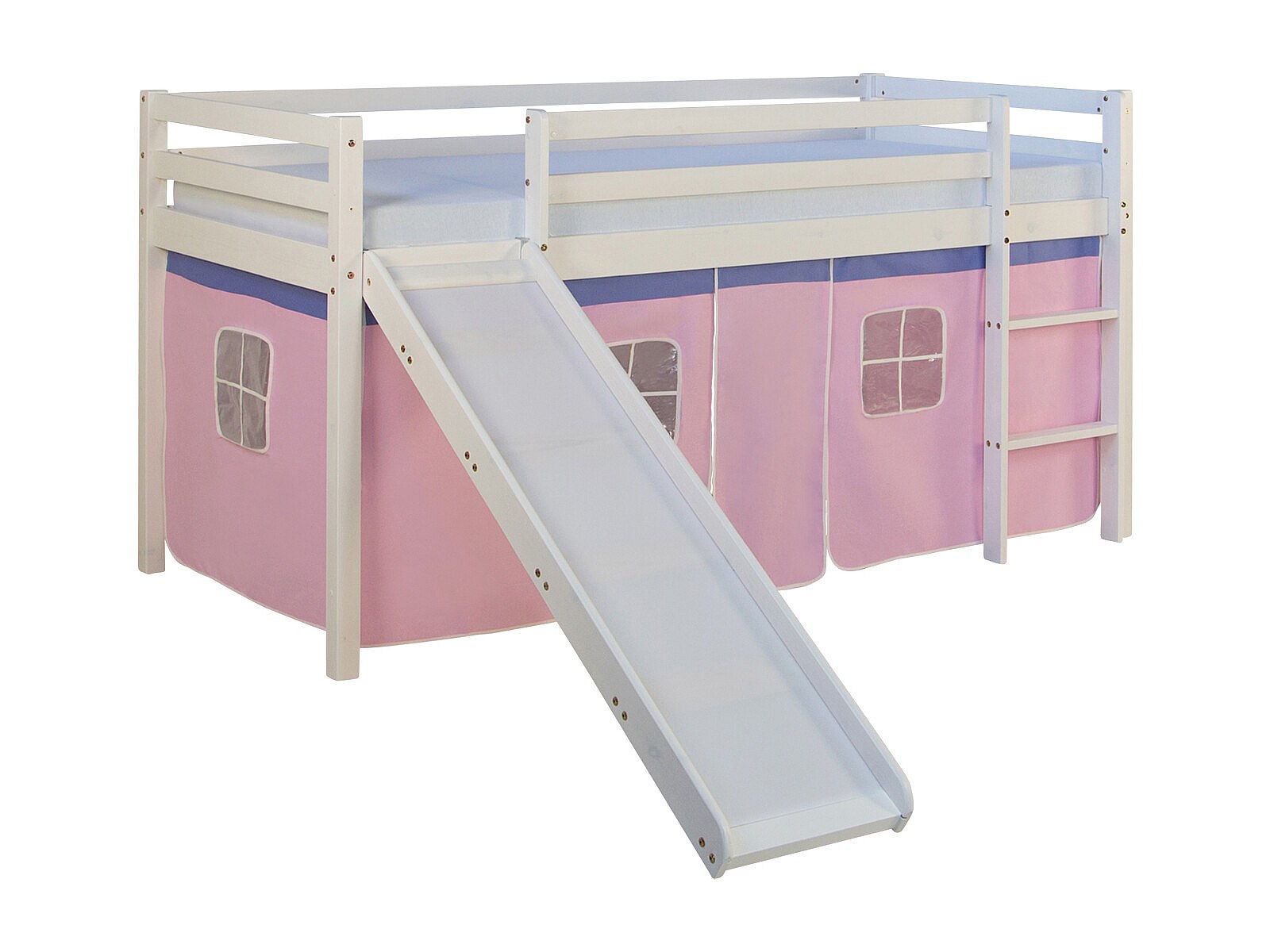 Letto a soppalco con scivolo 90x200 cm Legno di pino massiccio rosa Tenda tunnel