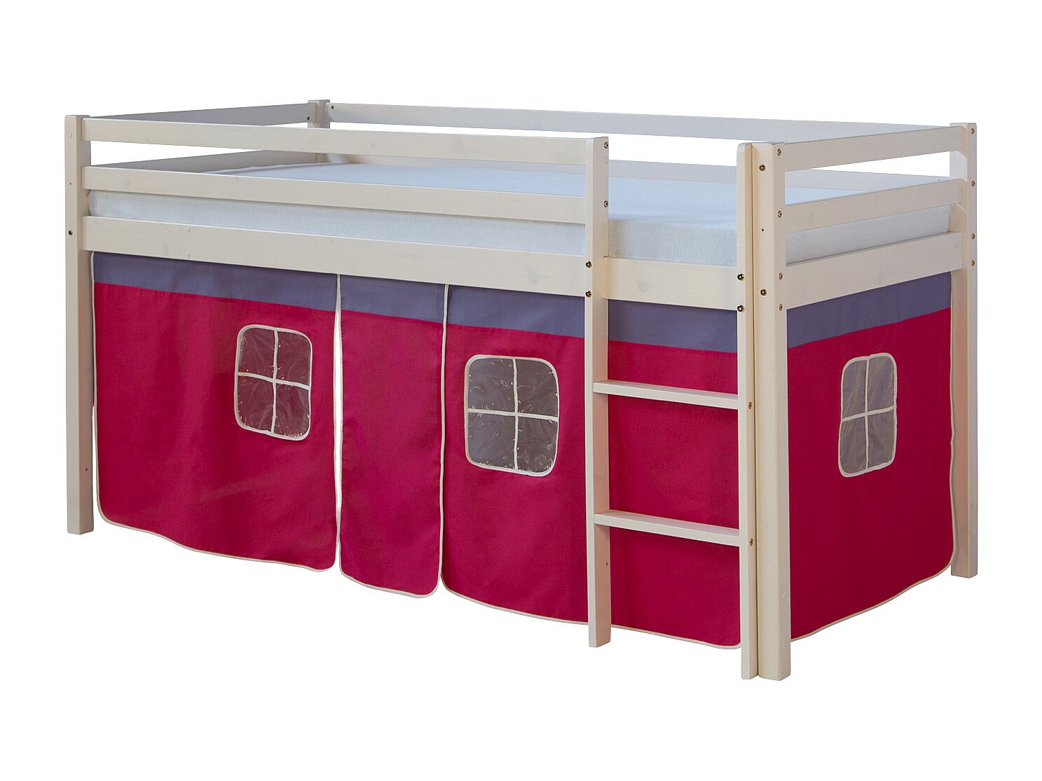 Letto a castello per bambini 208x110x97 cm con tenda bianca e rosa