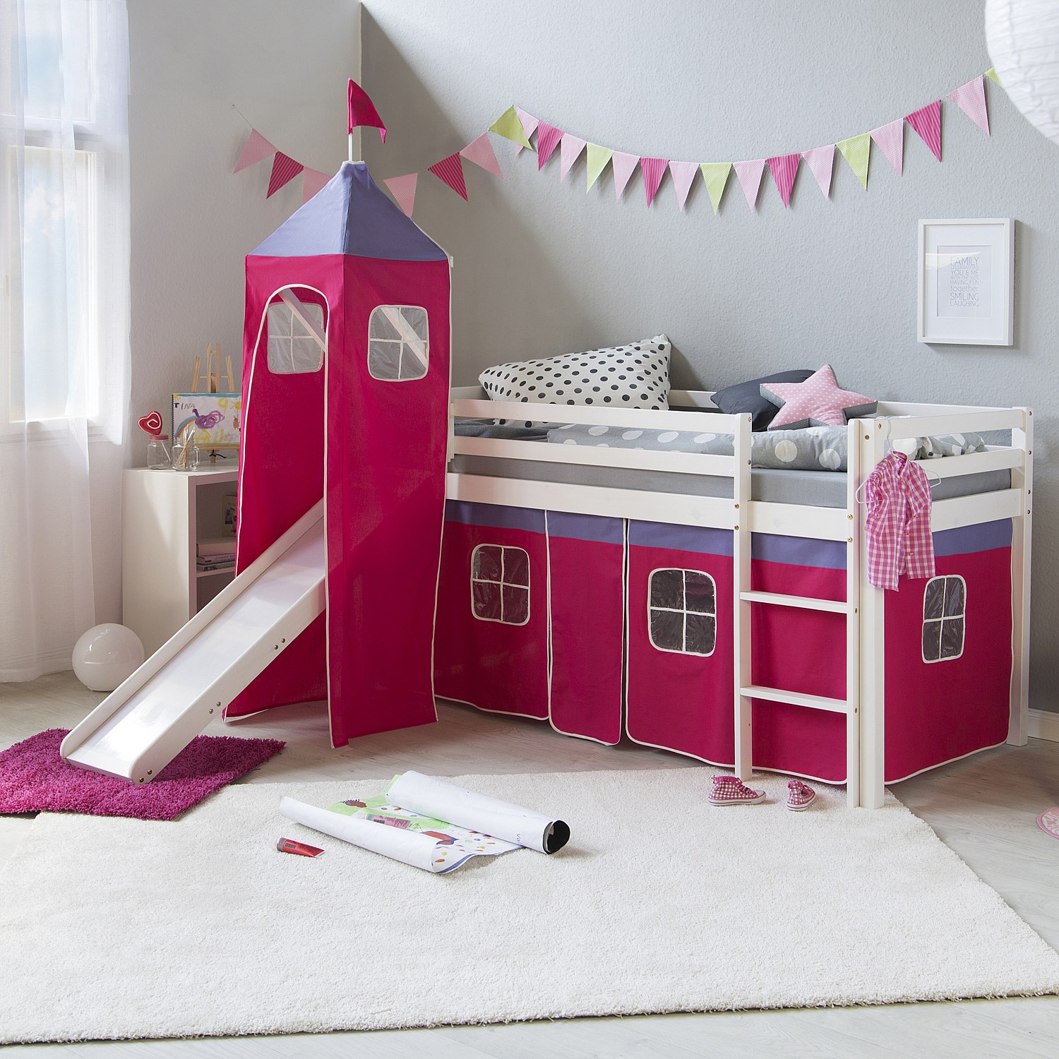 Letto a soppalco con scivolo 90x200 cm Torre rosa doghe Letto a castello