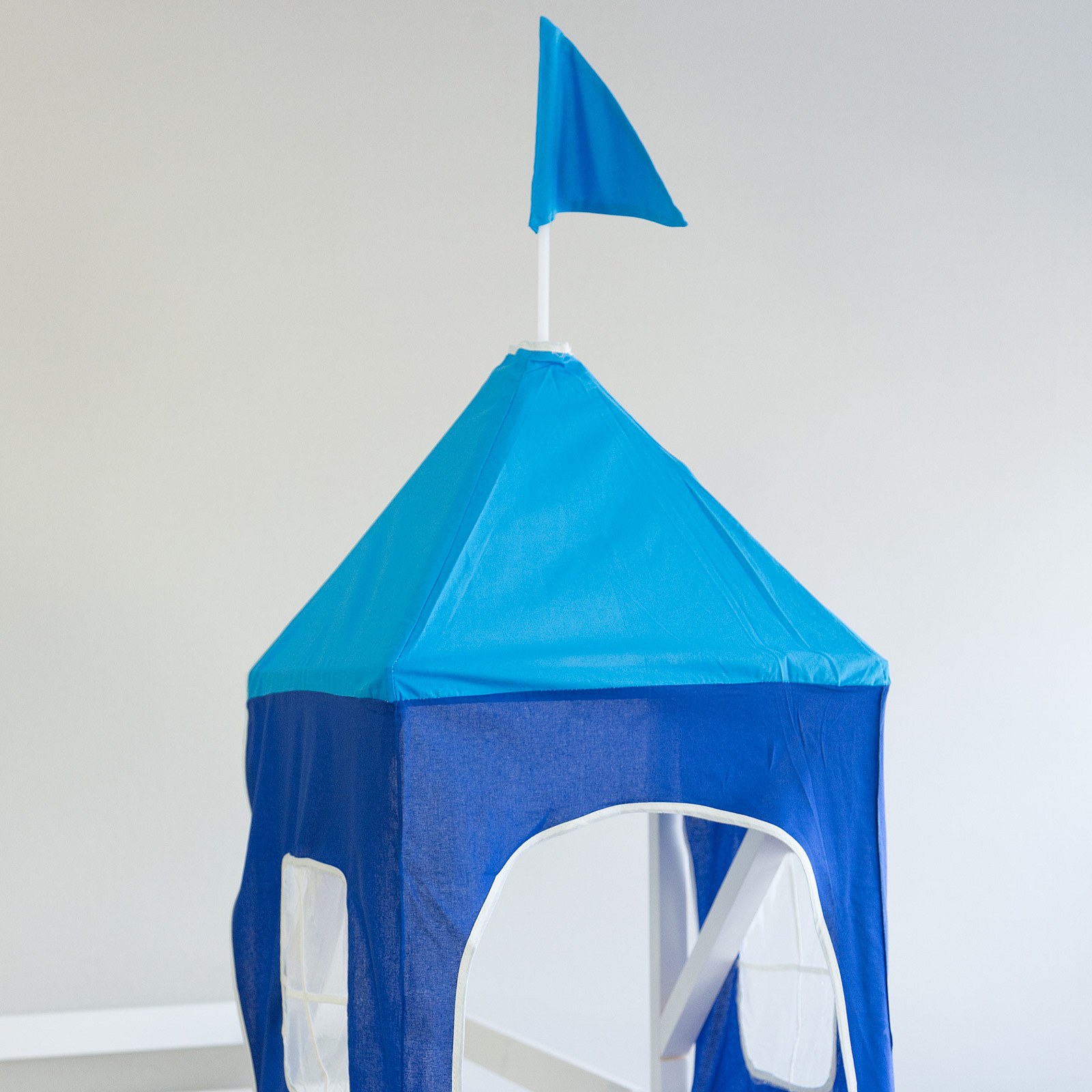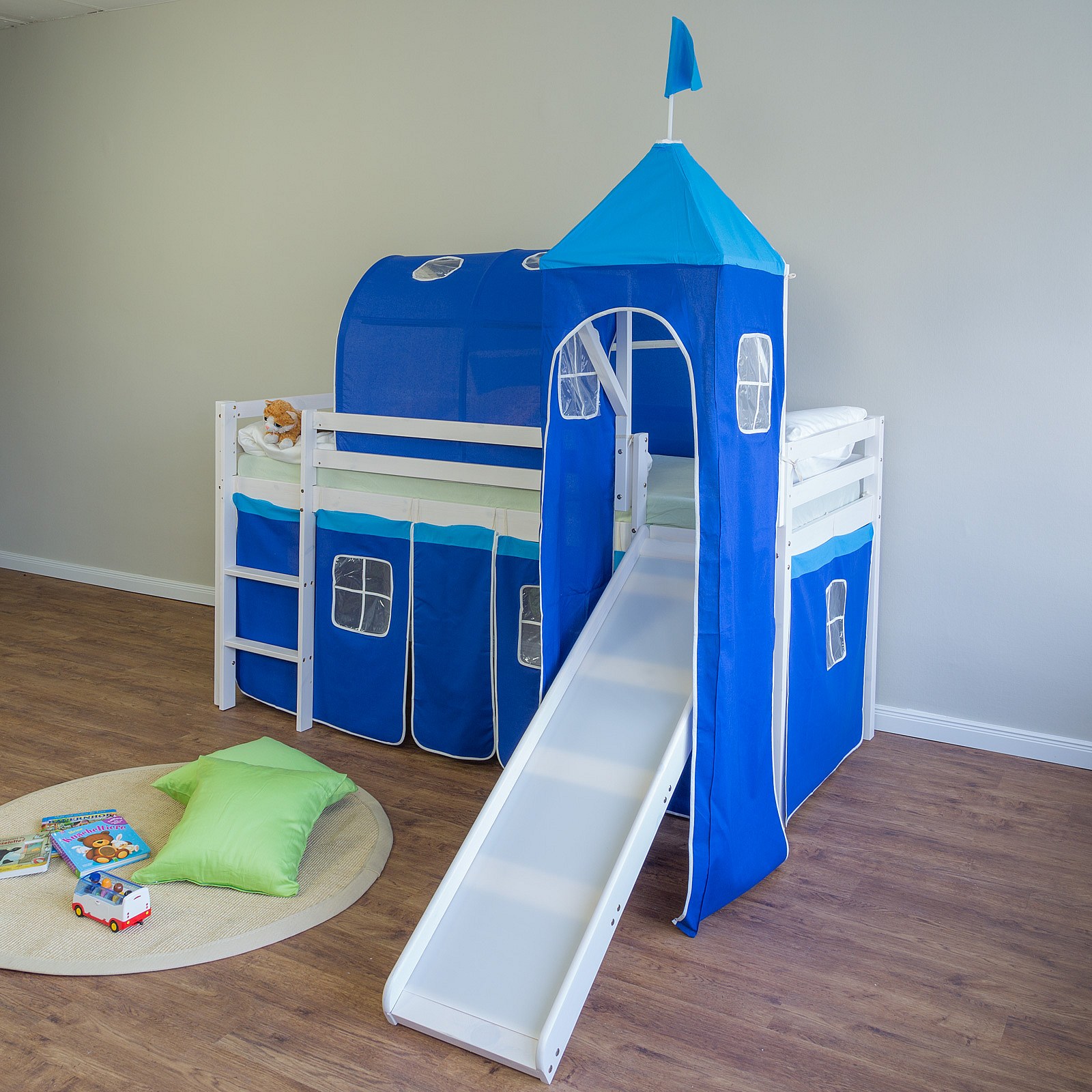 Letto a castello per bambini 208x110x97 cm bianco con tenda blu, letto a soppalco cabina