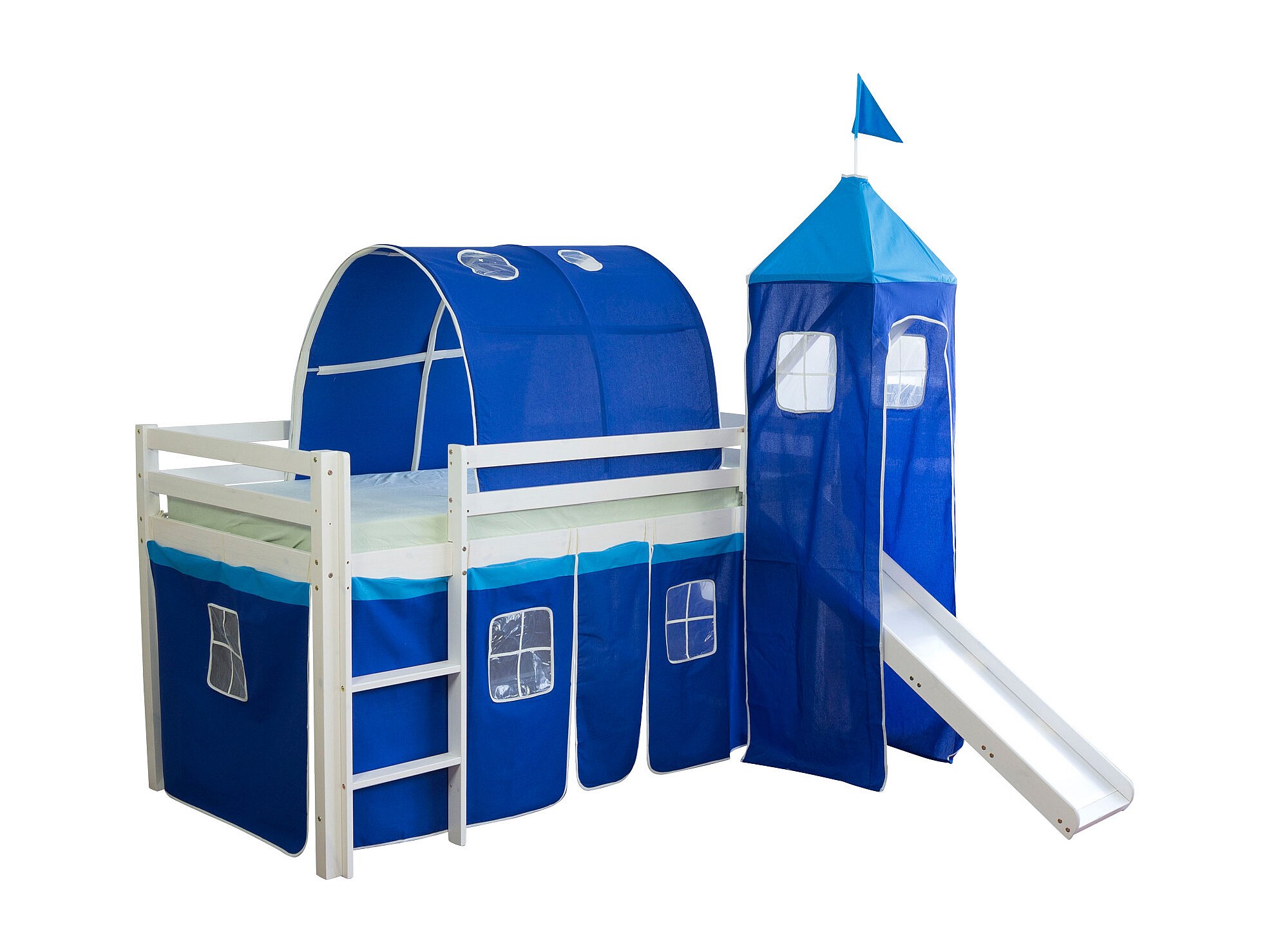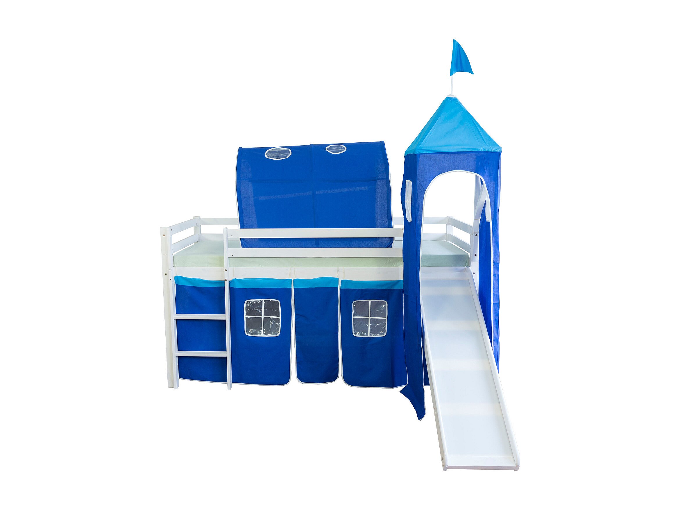 Letto a soppalco per bambini 90x200 cm Bianco Blu