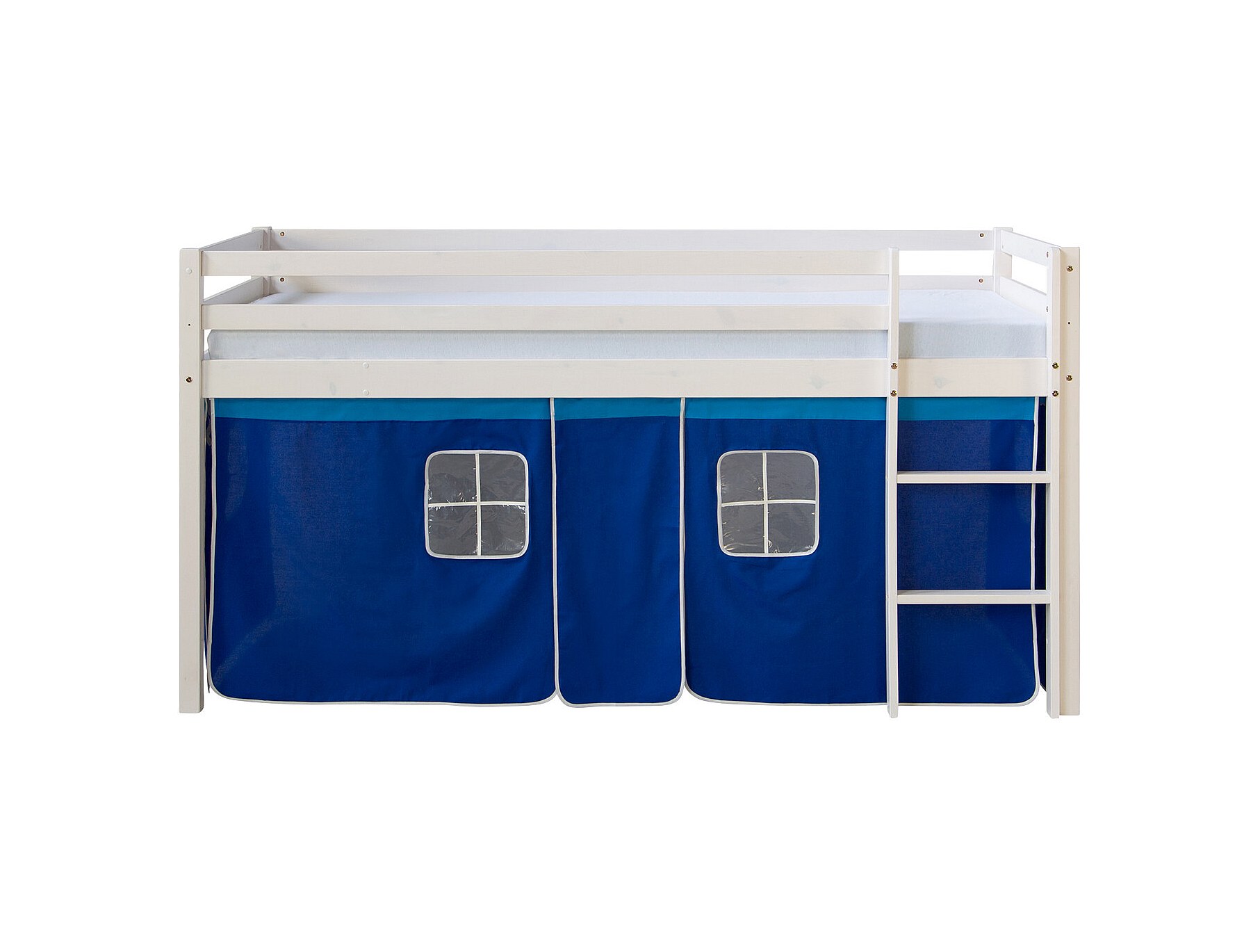 Letto a soppalco per bambini 90x200 cm bianco con tenda blu
