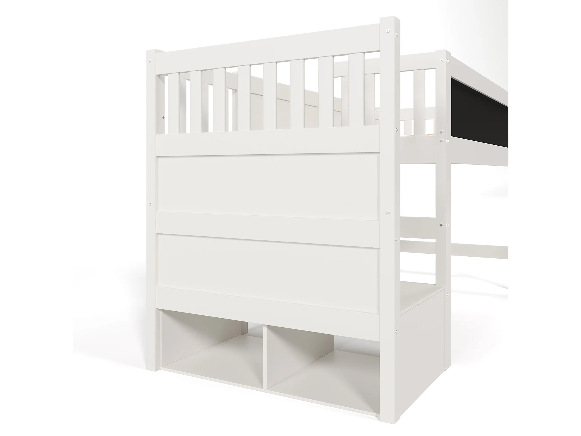 Letto a soppalco 90x200 cm con scaletta contenitore e tavoletta per scarabocchi - Spondine - Bianco (senza materasso)