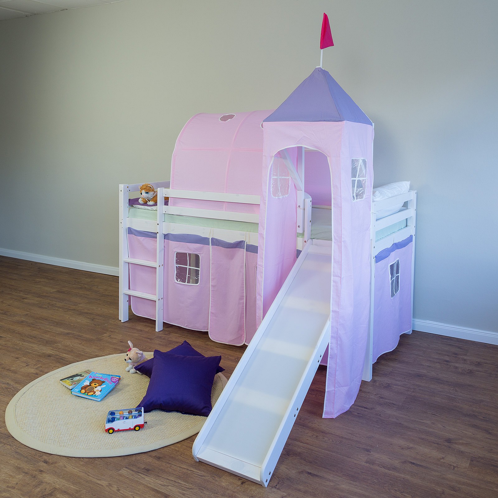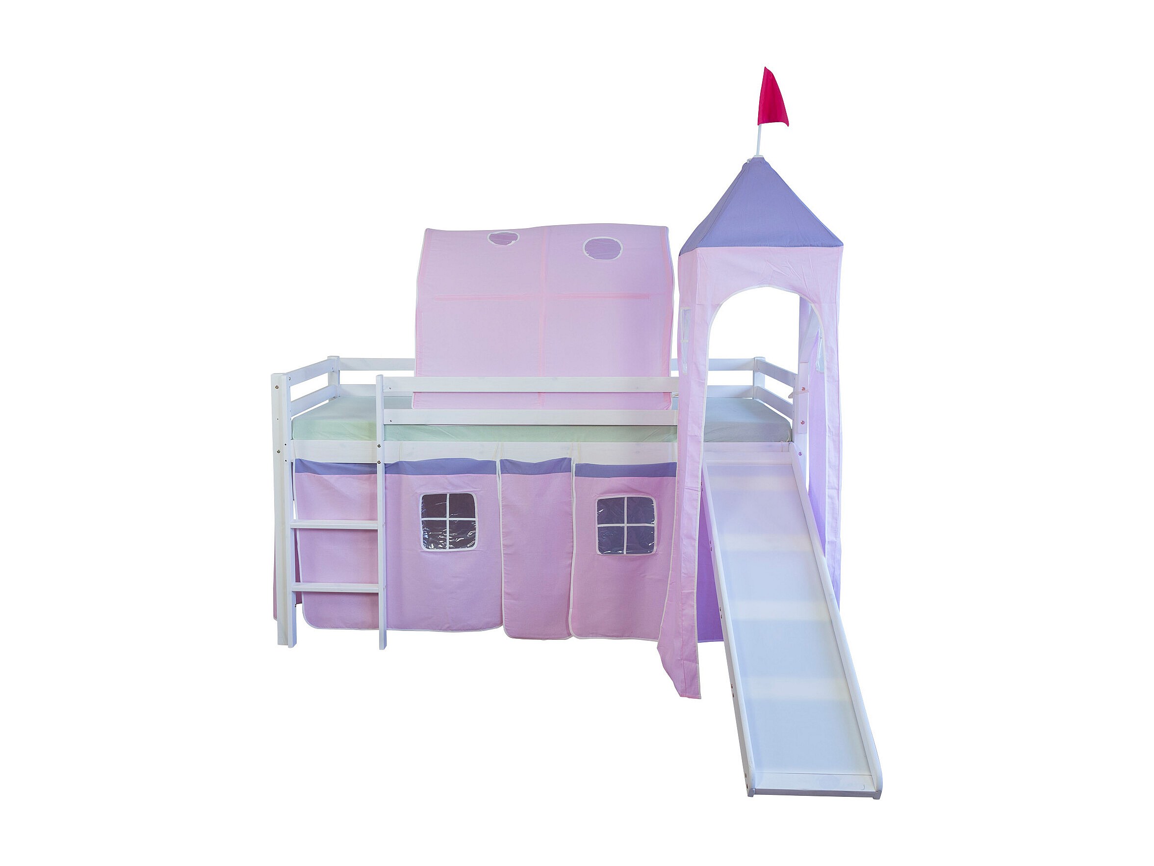 Letto a soppalco con scivolo 90x200 cm Torre rosa doghe Letto a castello