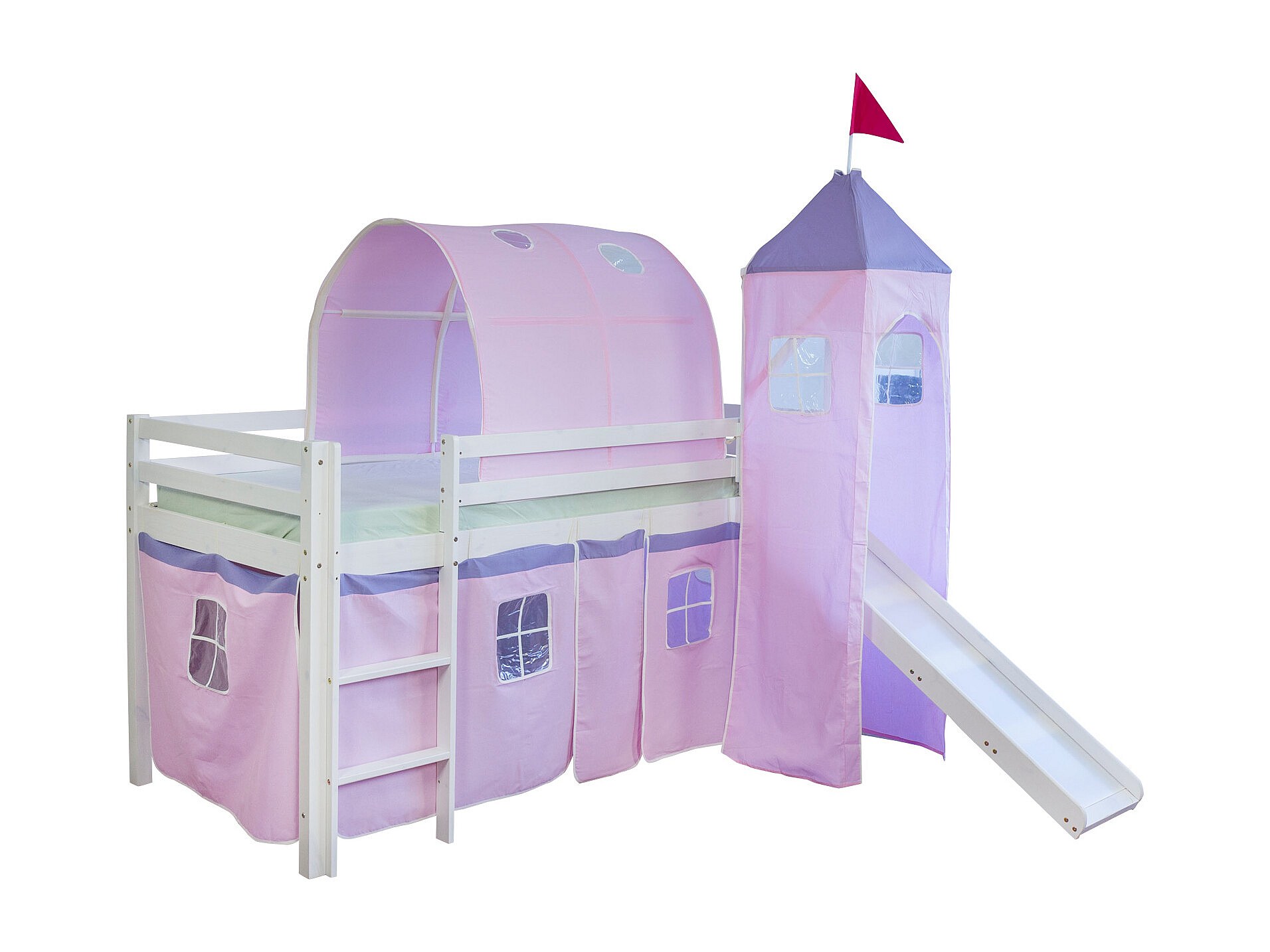 Letto a soppalco con scivolo 90x200 cm Rosa Legno di pino massiccio Tenda