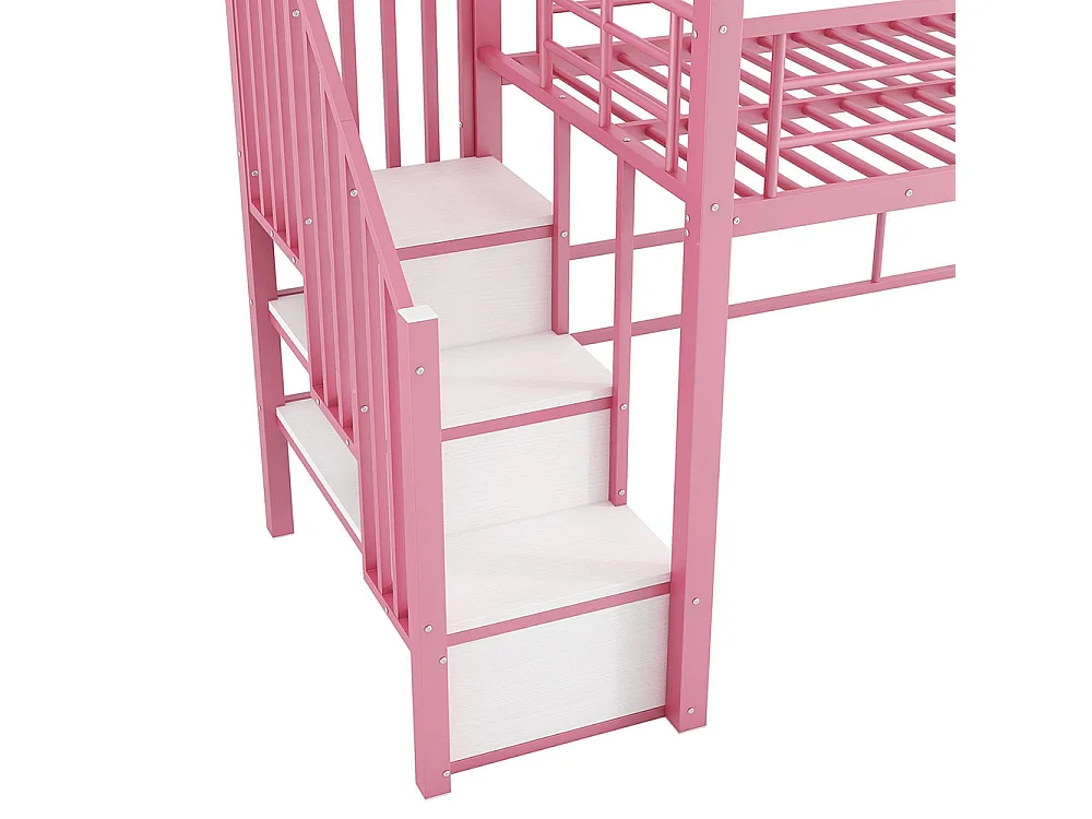 Letto a soppalco 90x200, con struttura a baldacchino e scala integrata con contenitore, metallo, rosa