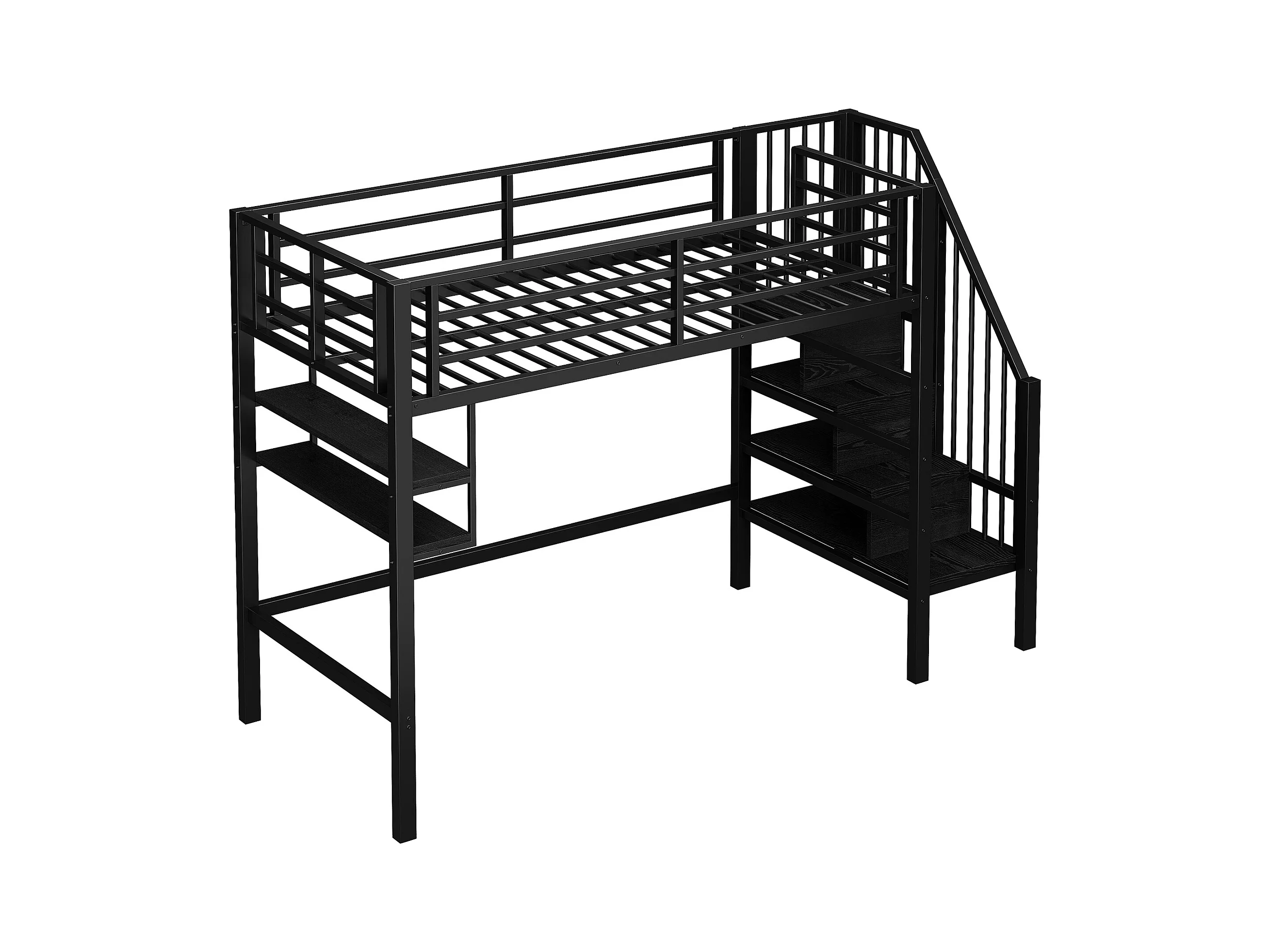 Letto a soppalco 90x200cm - con scala di stoccaggio - con barriere - nero (senza materasso)