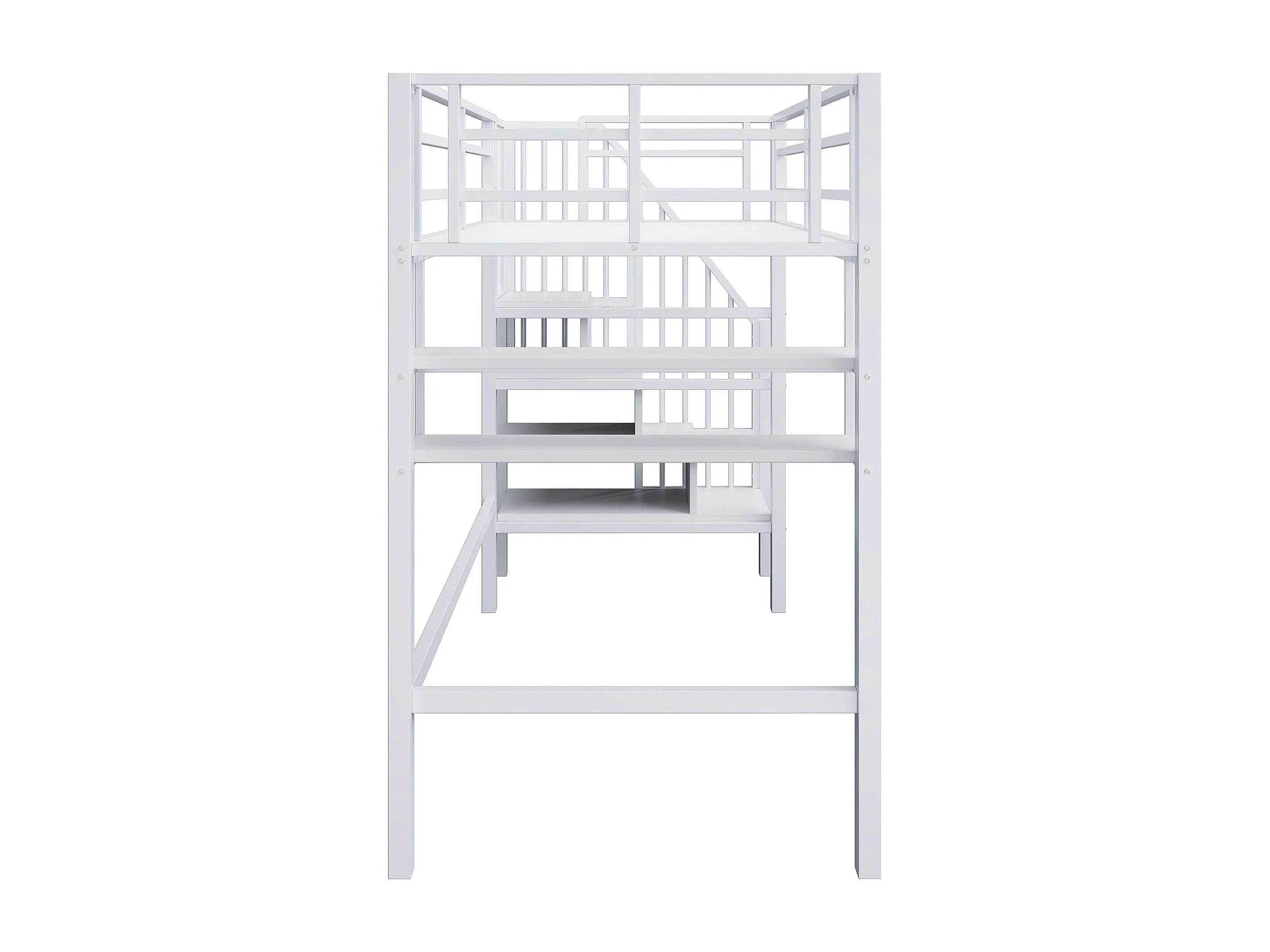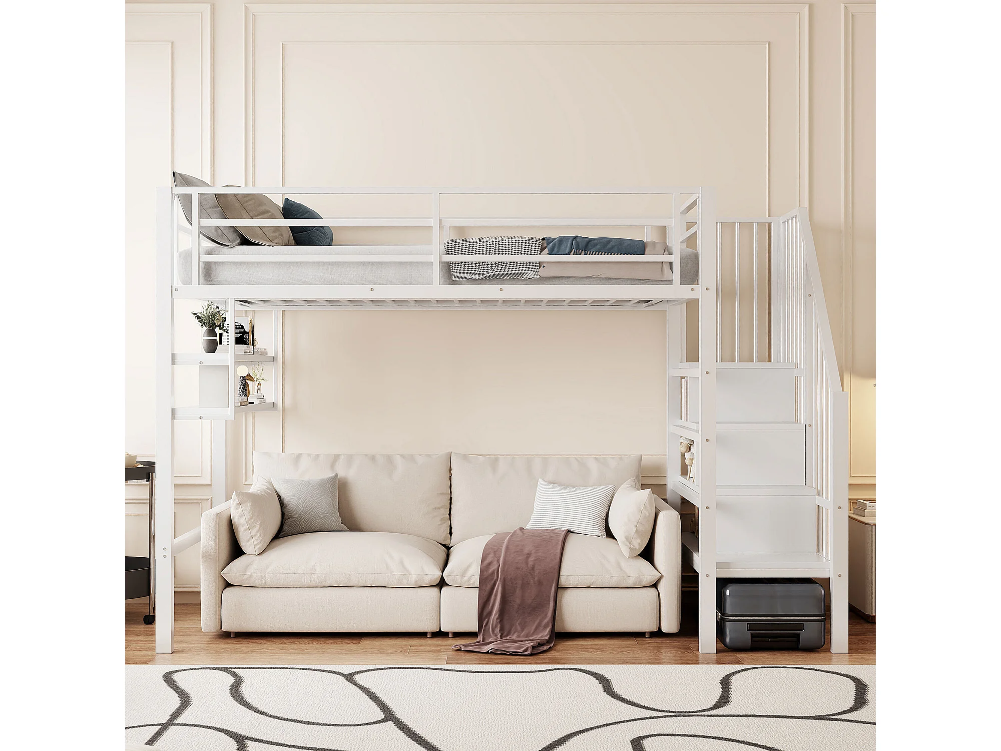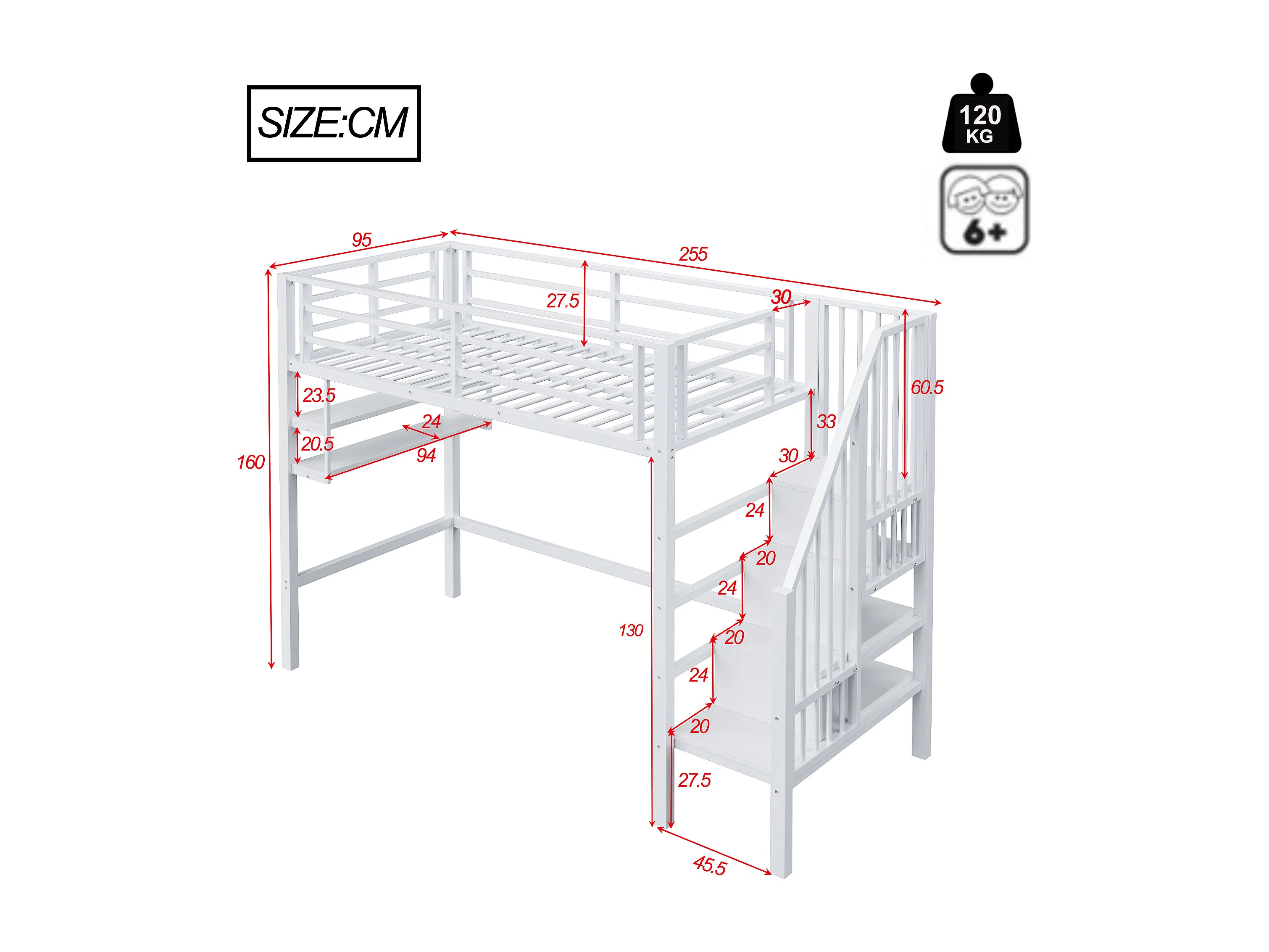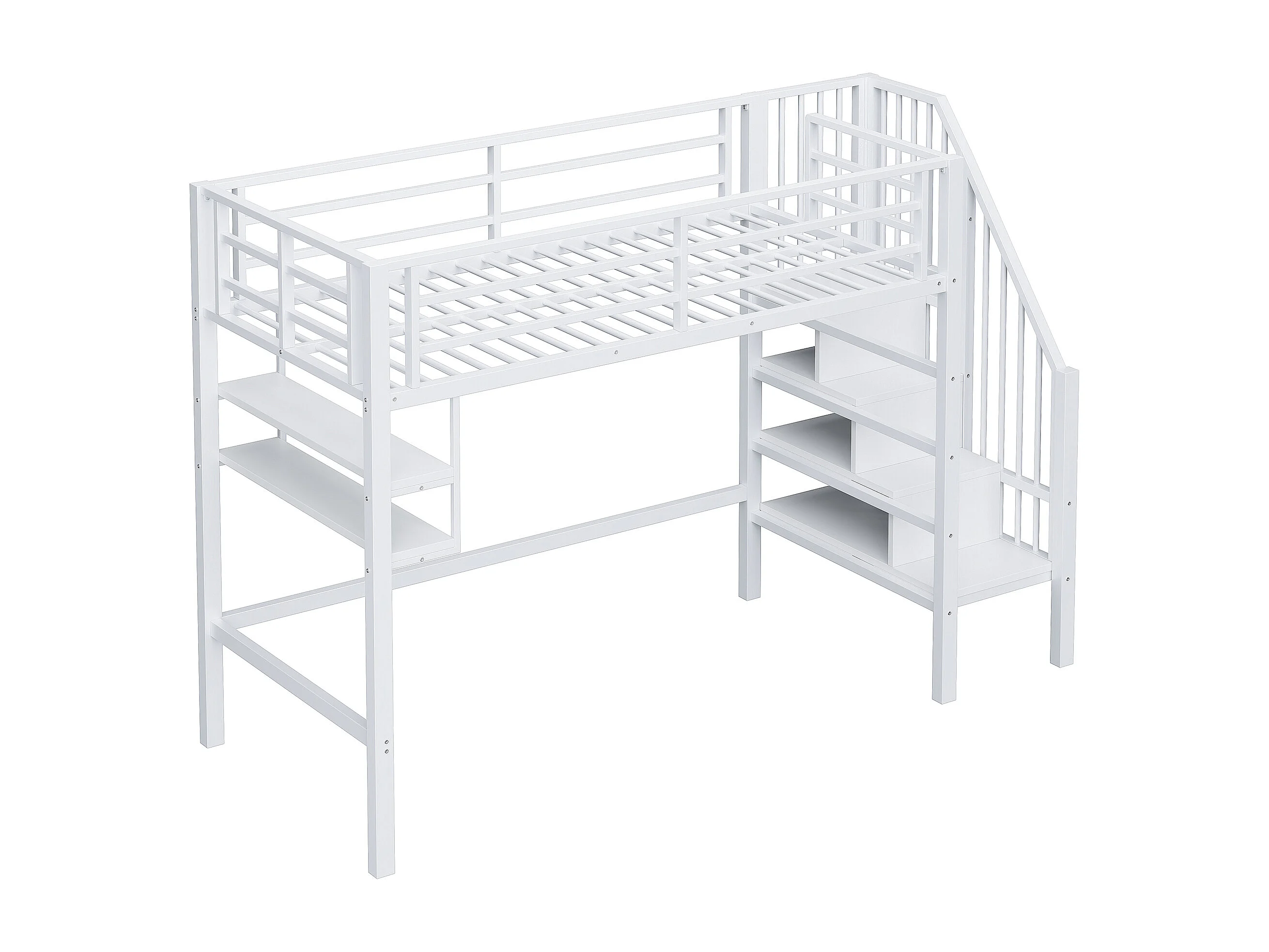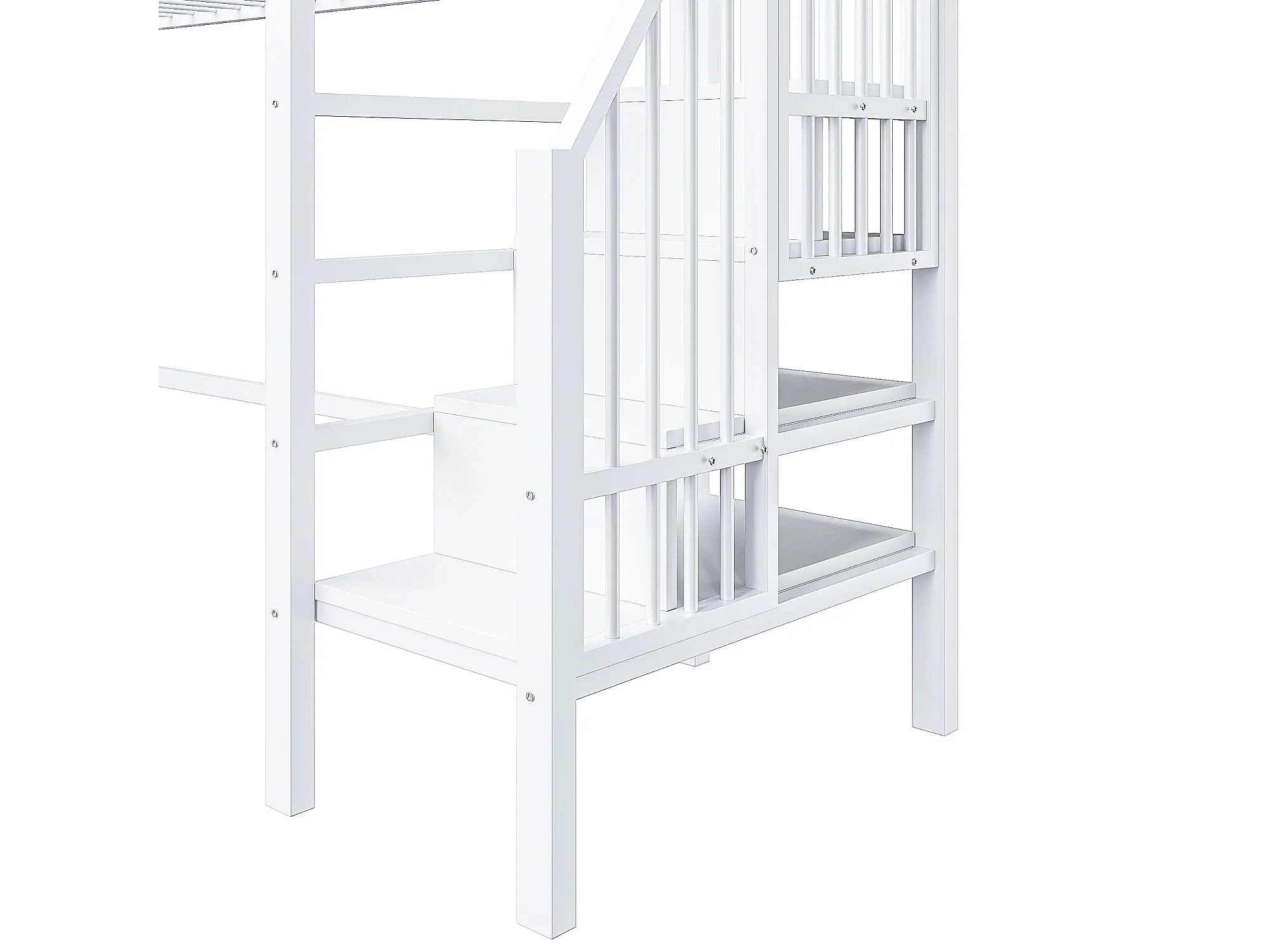 Letto a soppalco 90x200cm Letto per ragazzi con sponde di sicurezza e ripiani portaoggetti, metallo - bianco (senza materasso)
