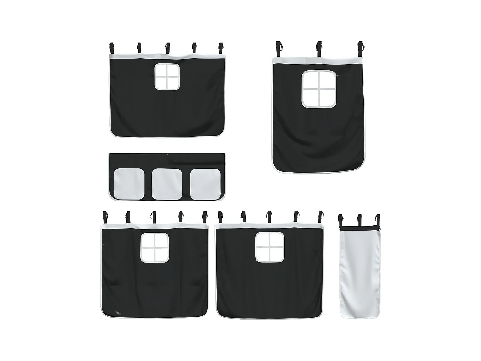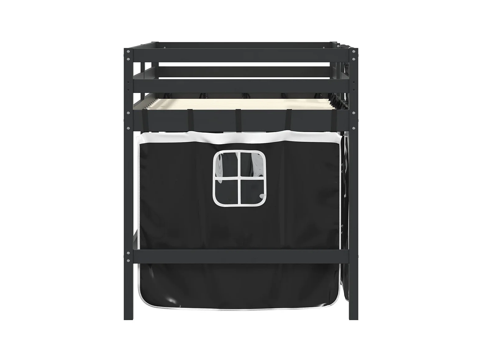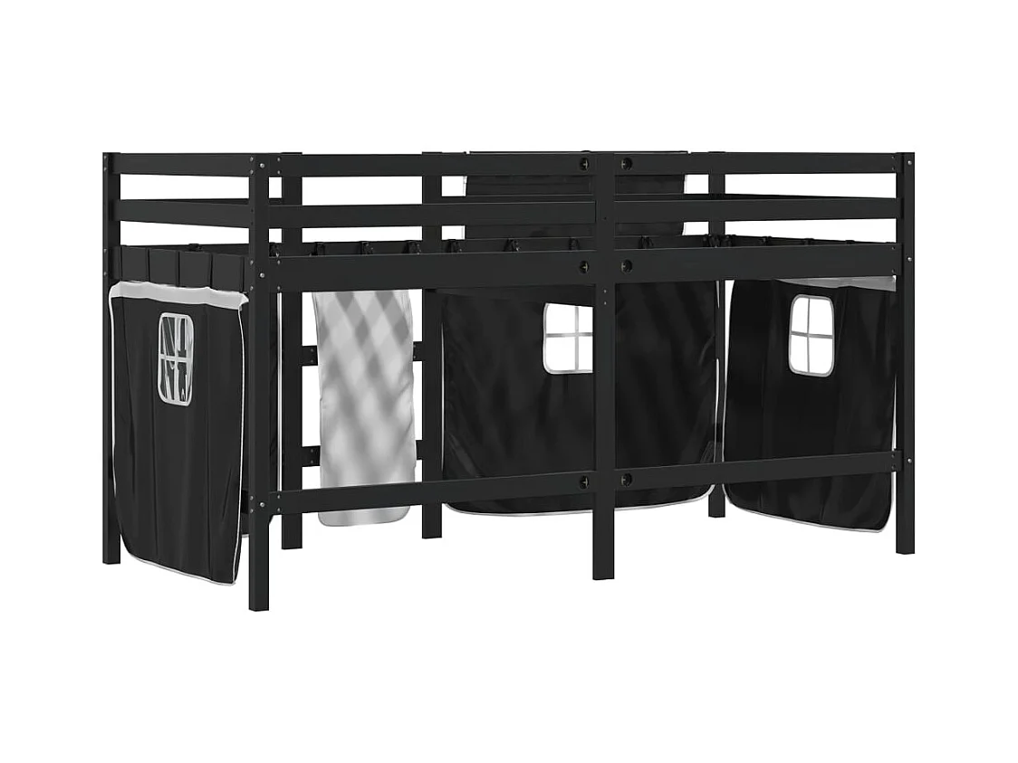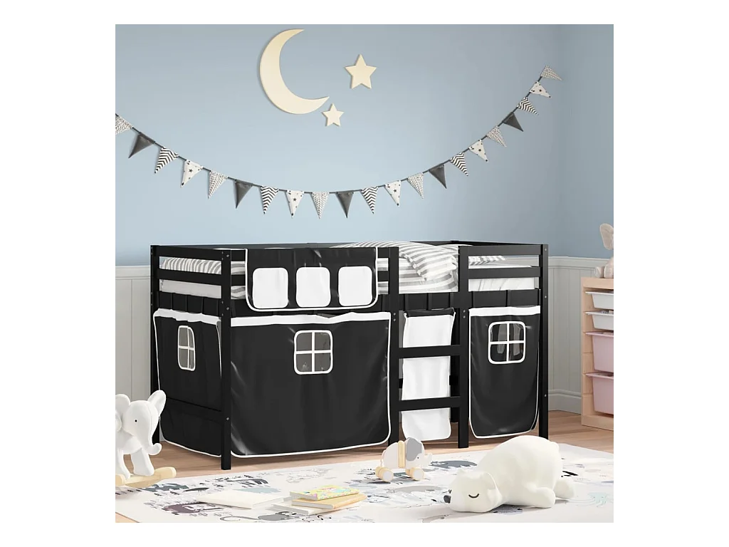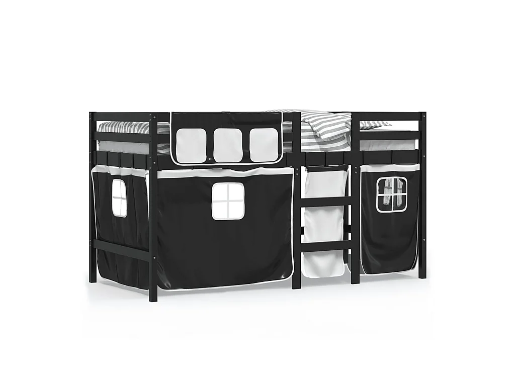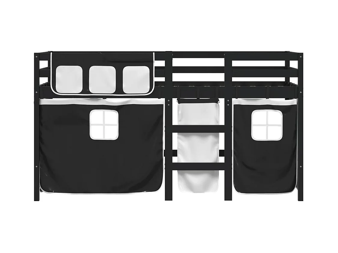 Letto a Soppalco Bambini con Tende Bianco e Nero 90x190 cm Pino