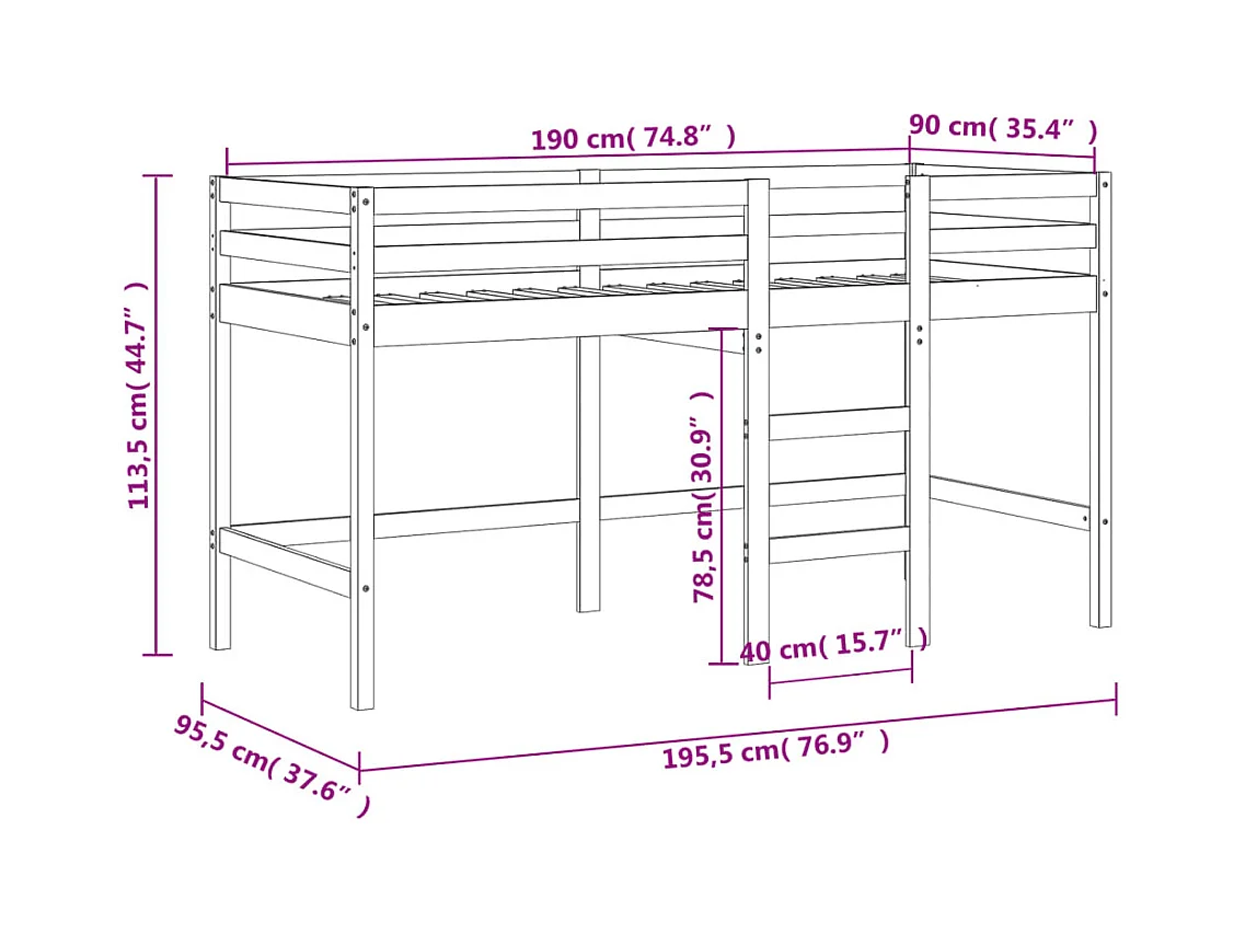 Letto a Soppalco Bianco 90x190 cm in Legno Massello di Pino