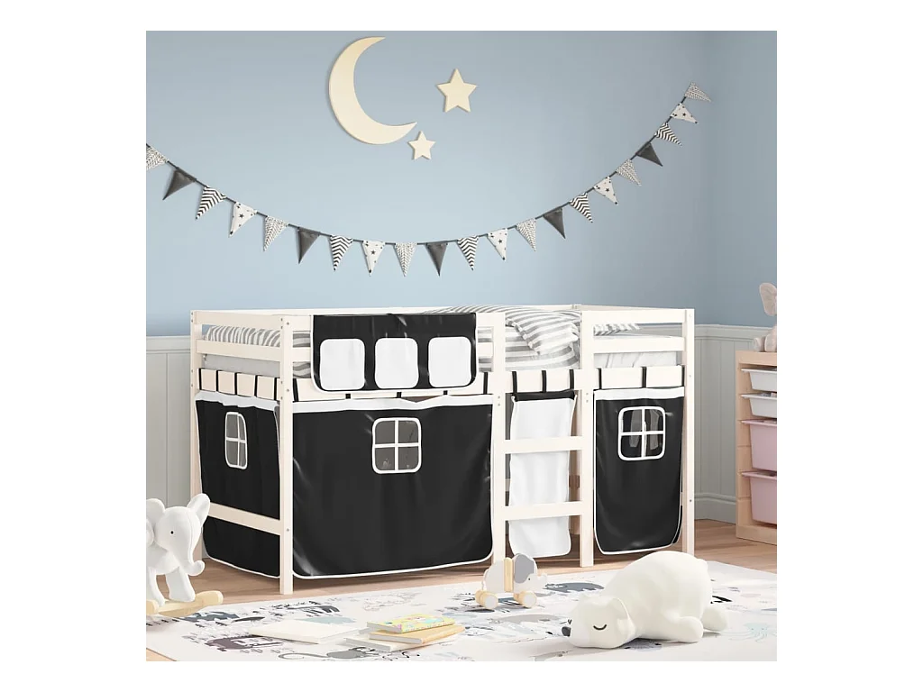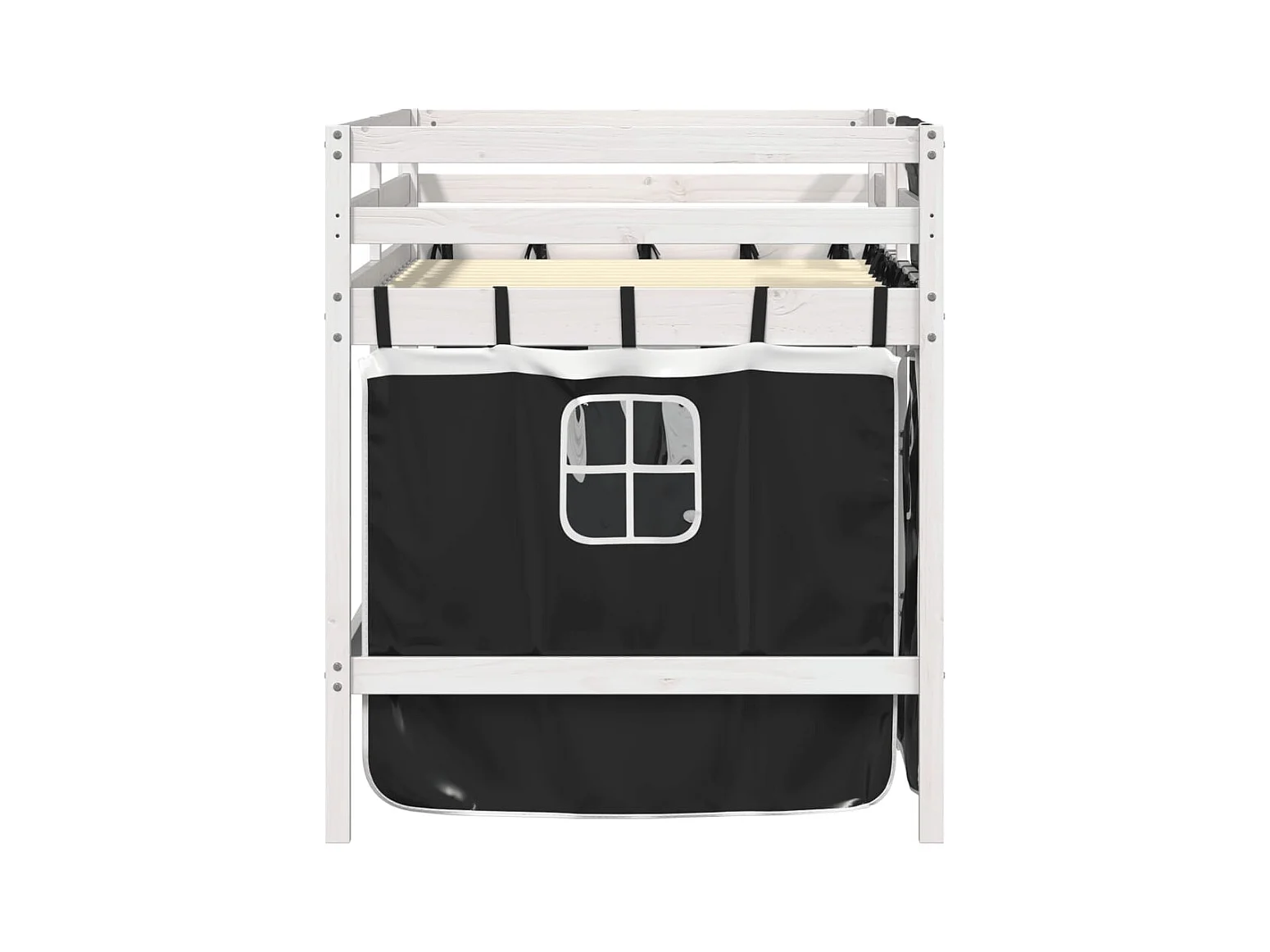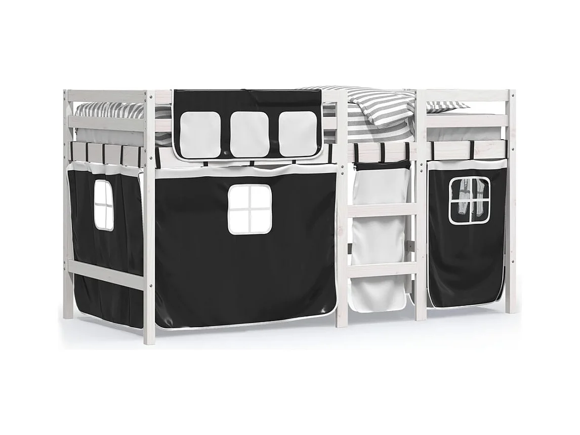 Letto a Soppalco Bambini con Tende Bianco e Nero 90x190 cm Pino