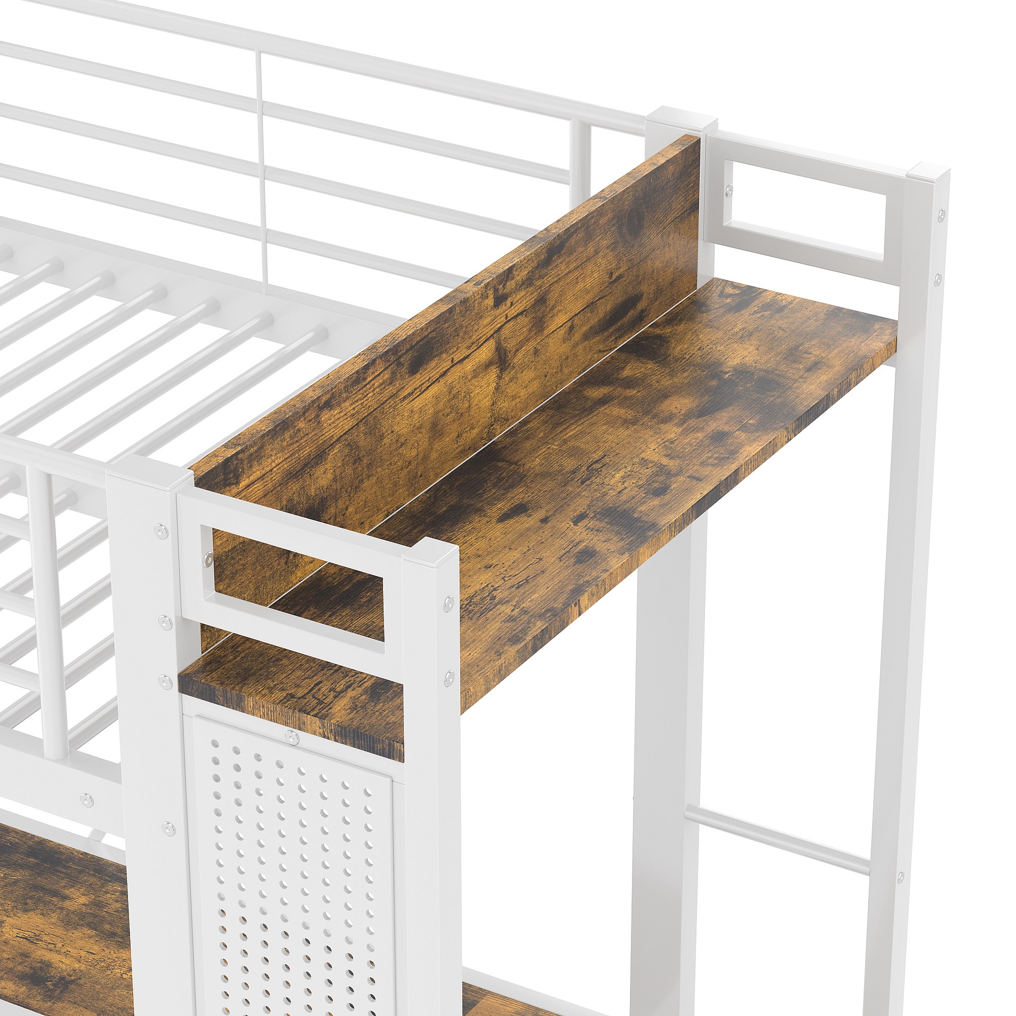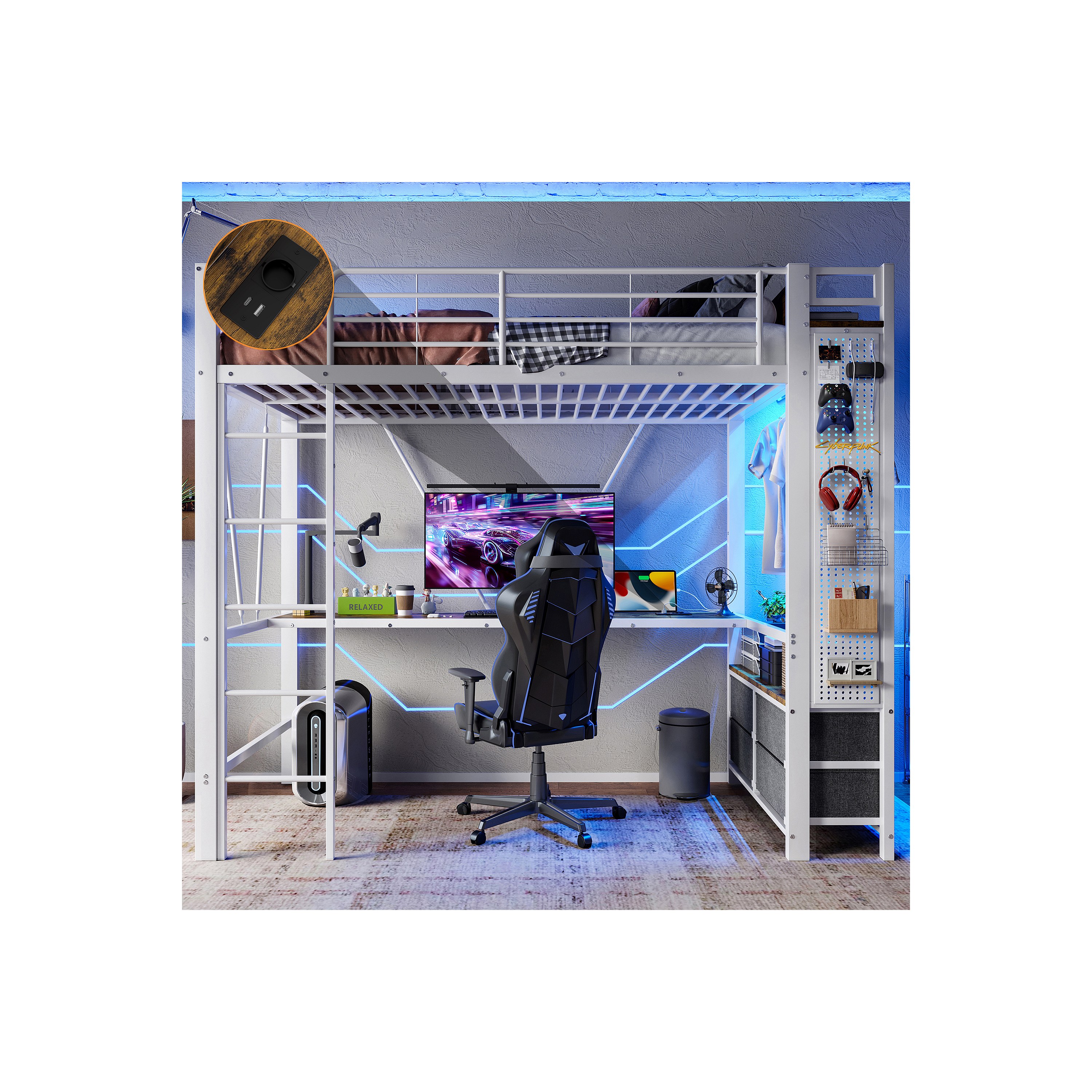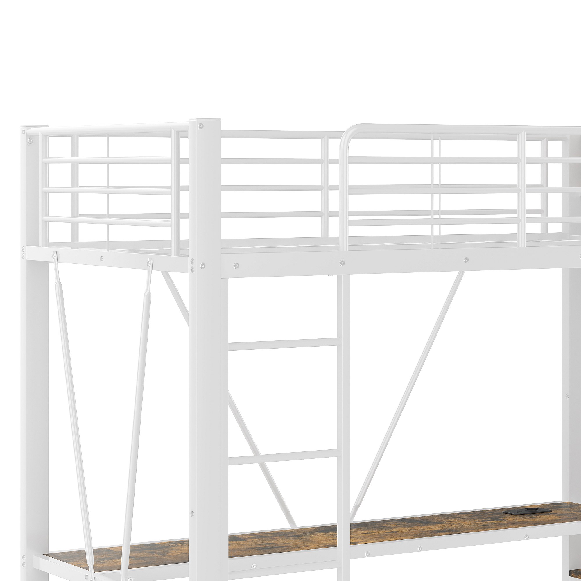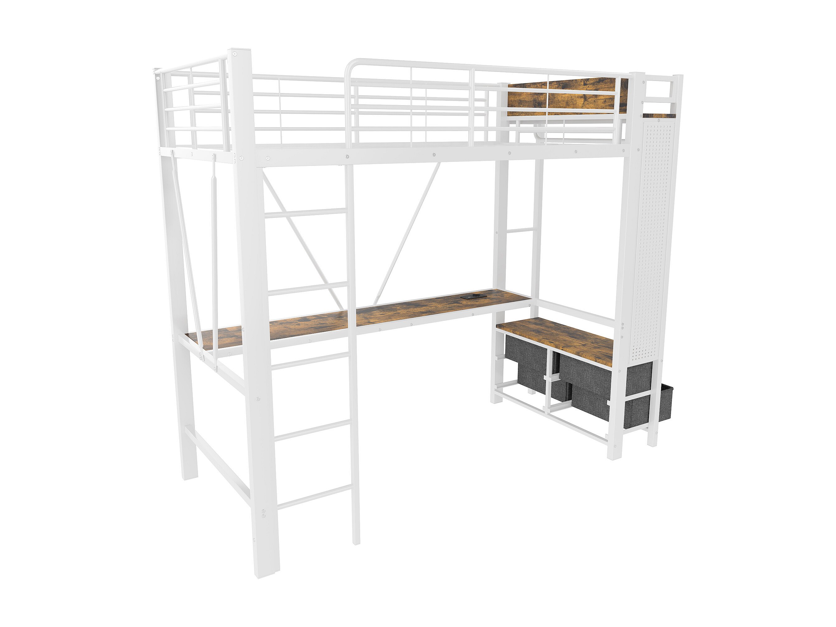 Letto a soppalco bianco per bambini 90x200cm con scrivania, 4 cassetti, LED, stendibiancheria e USB + TYPE-C (senza materasso)
