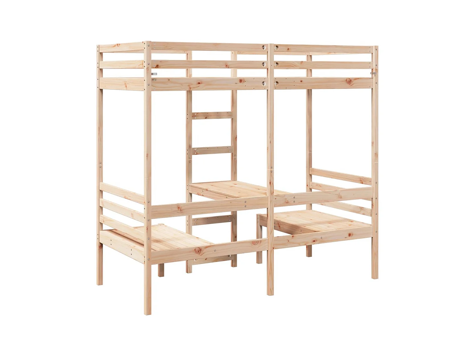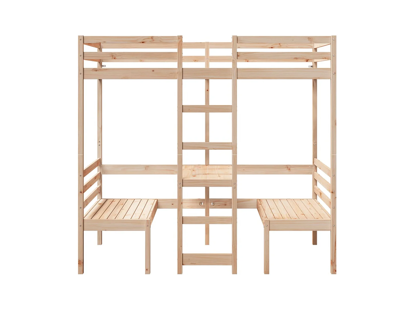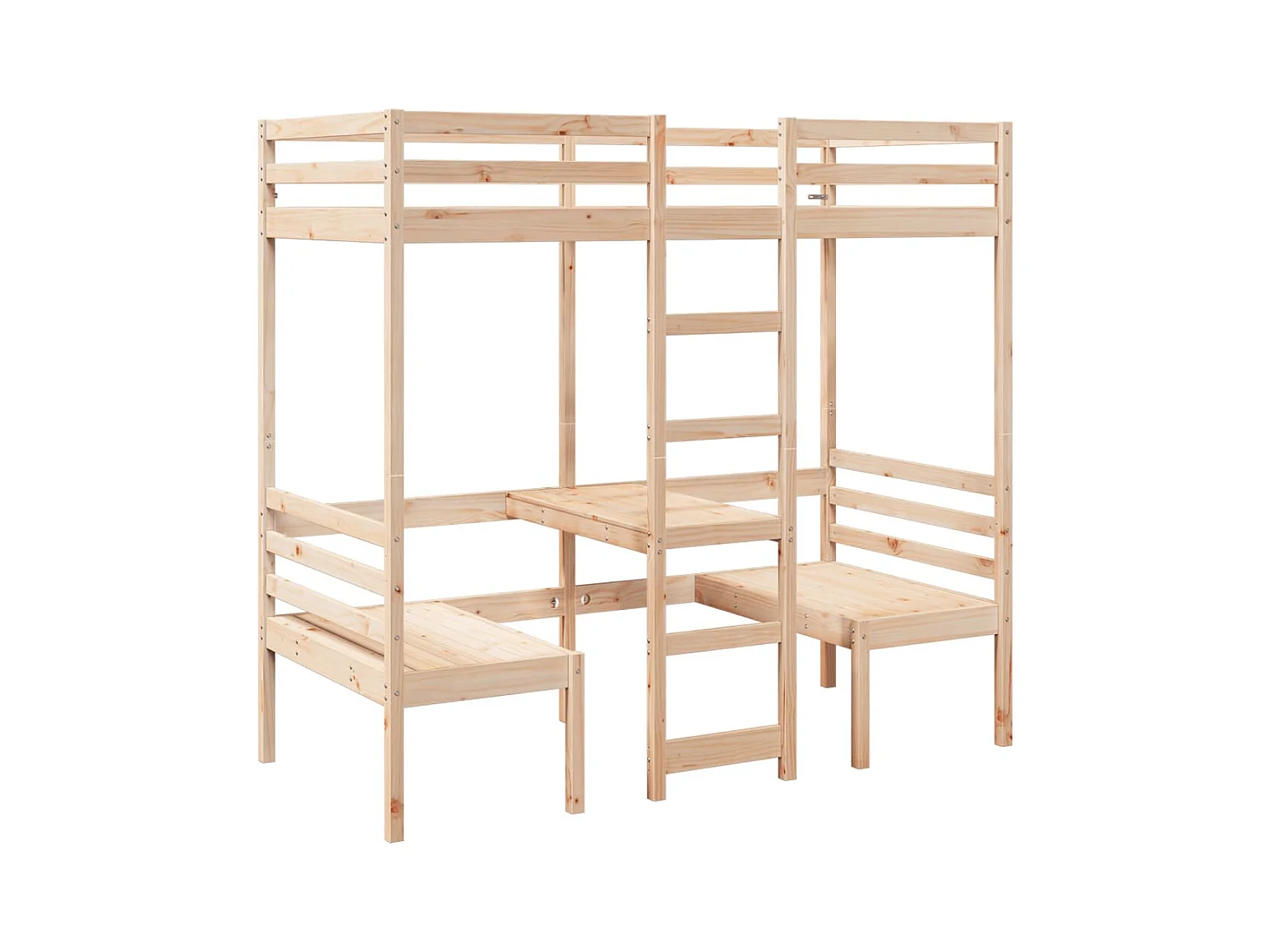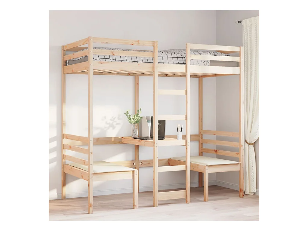 Letto a soppalco con scrivania e sedie 75x190 cm in pino massello