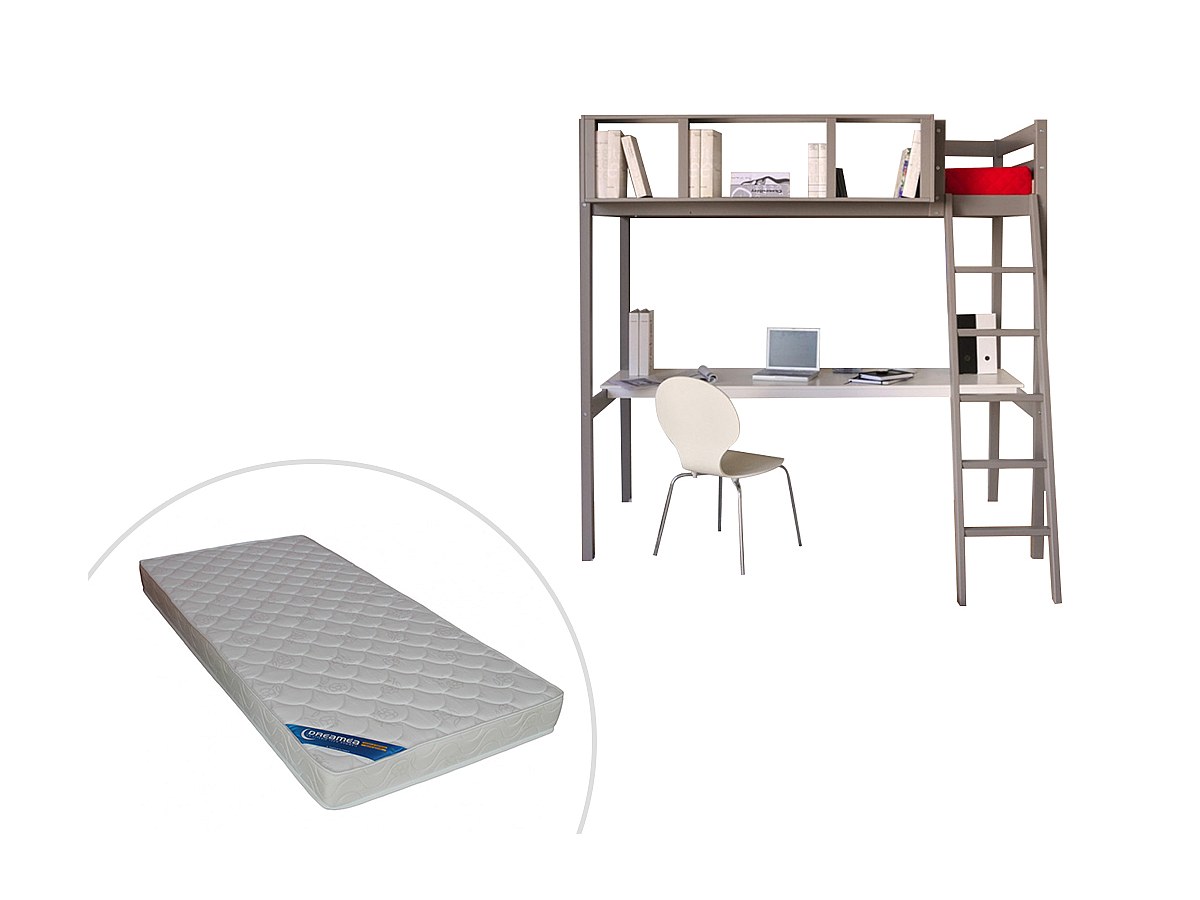 Letto a soppalco con scrivania e vani integrati 90 x 190 cm in Abete rosso Grigio + Materasso - GIACOMO