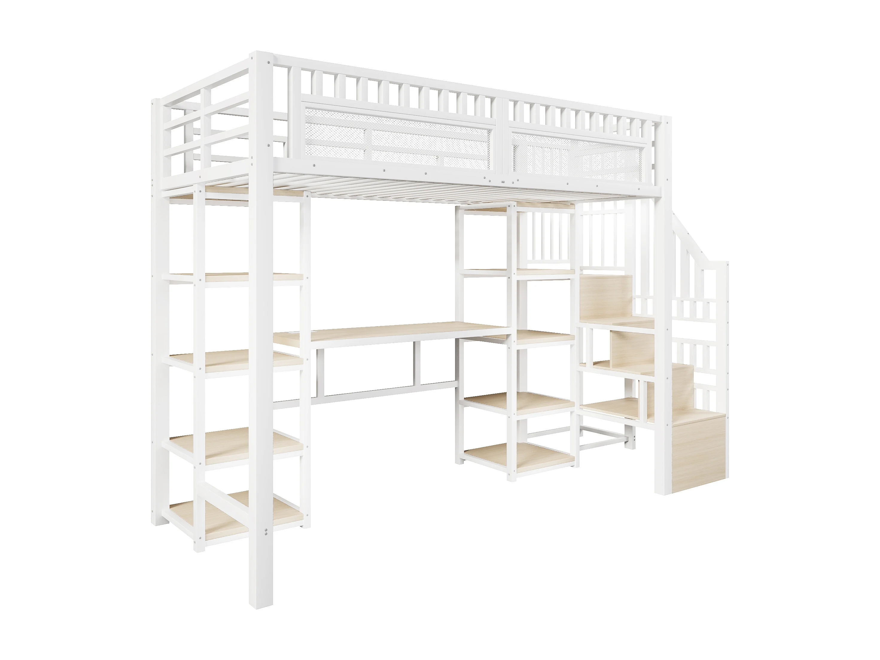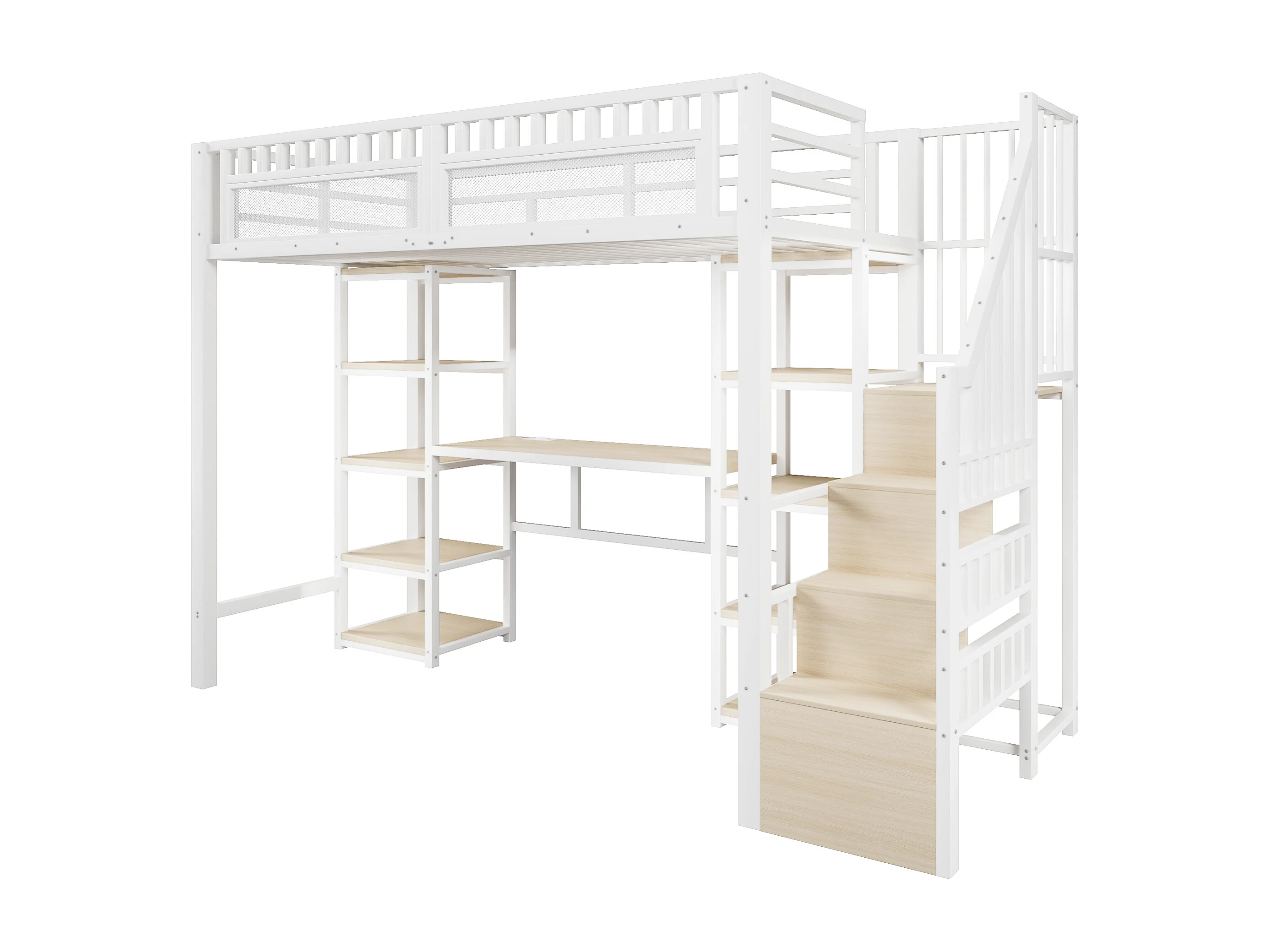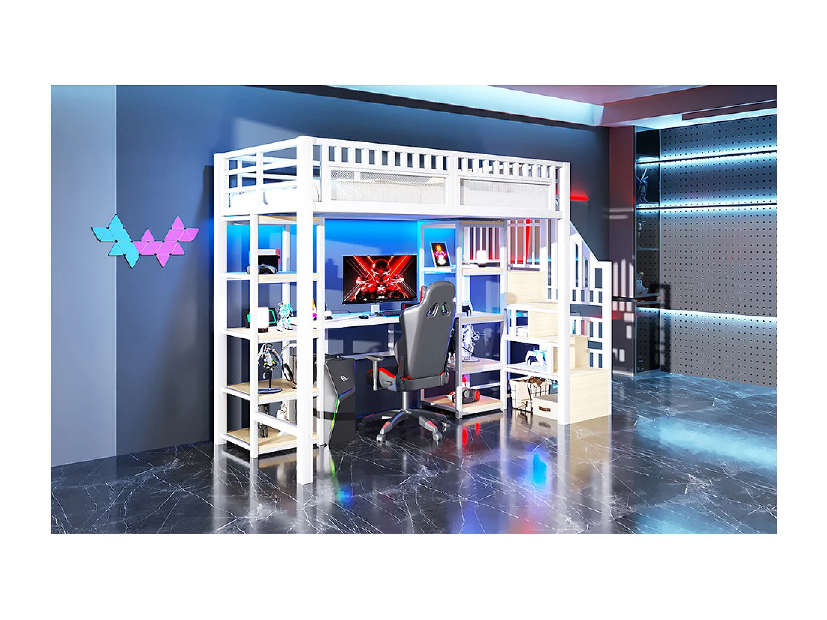 Letto a soppalco in metallo 90 x 200 cm con scrivania, illuminazione a LED e porte USB - Bianco
