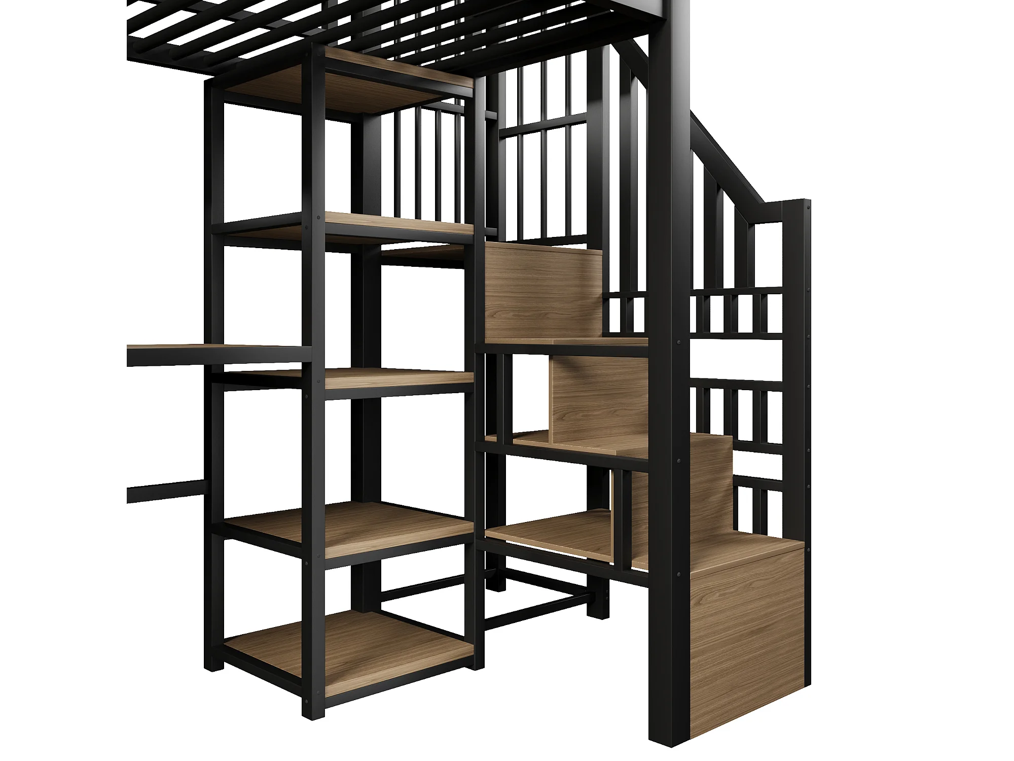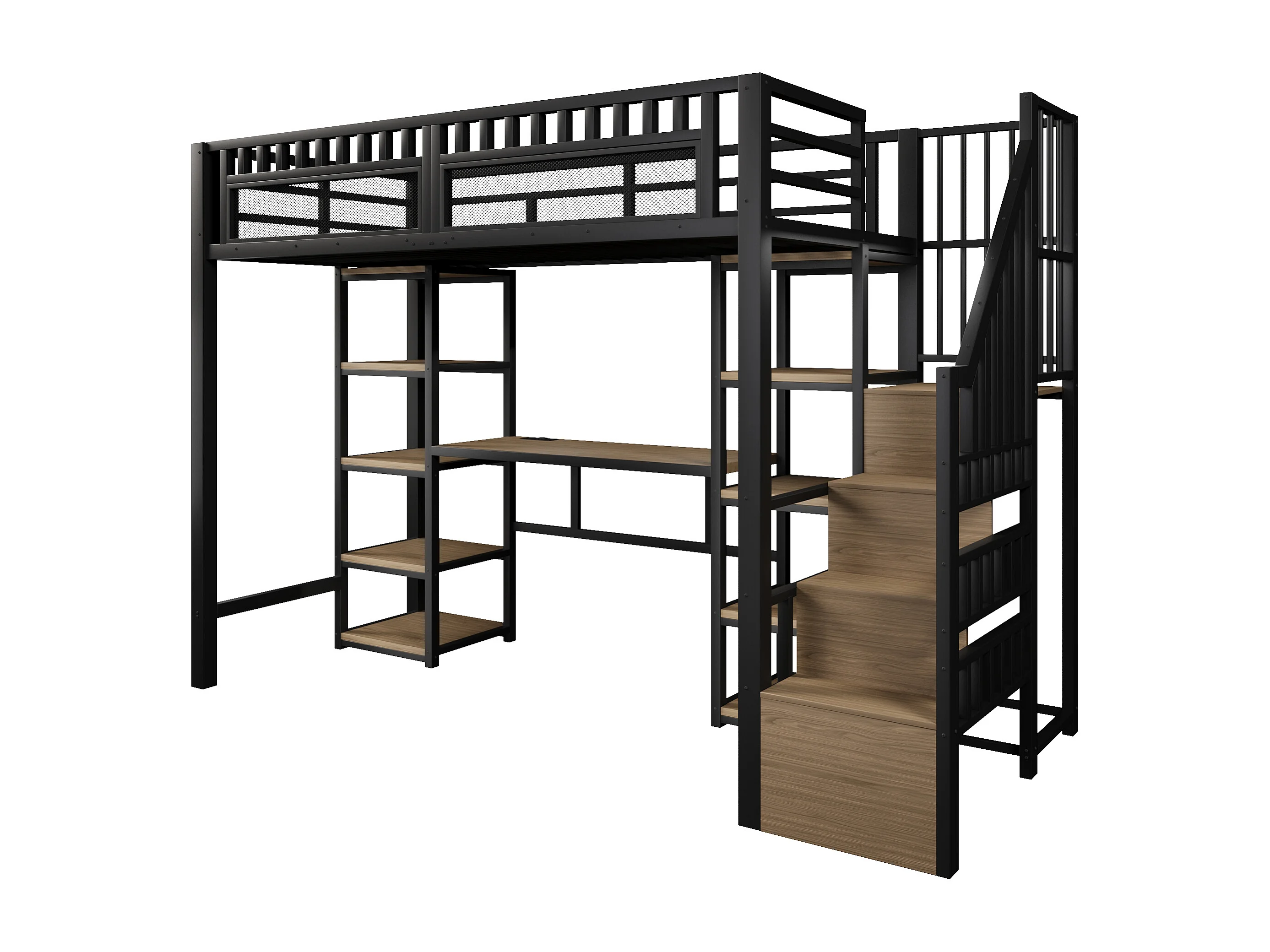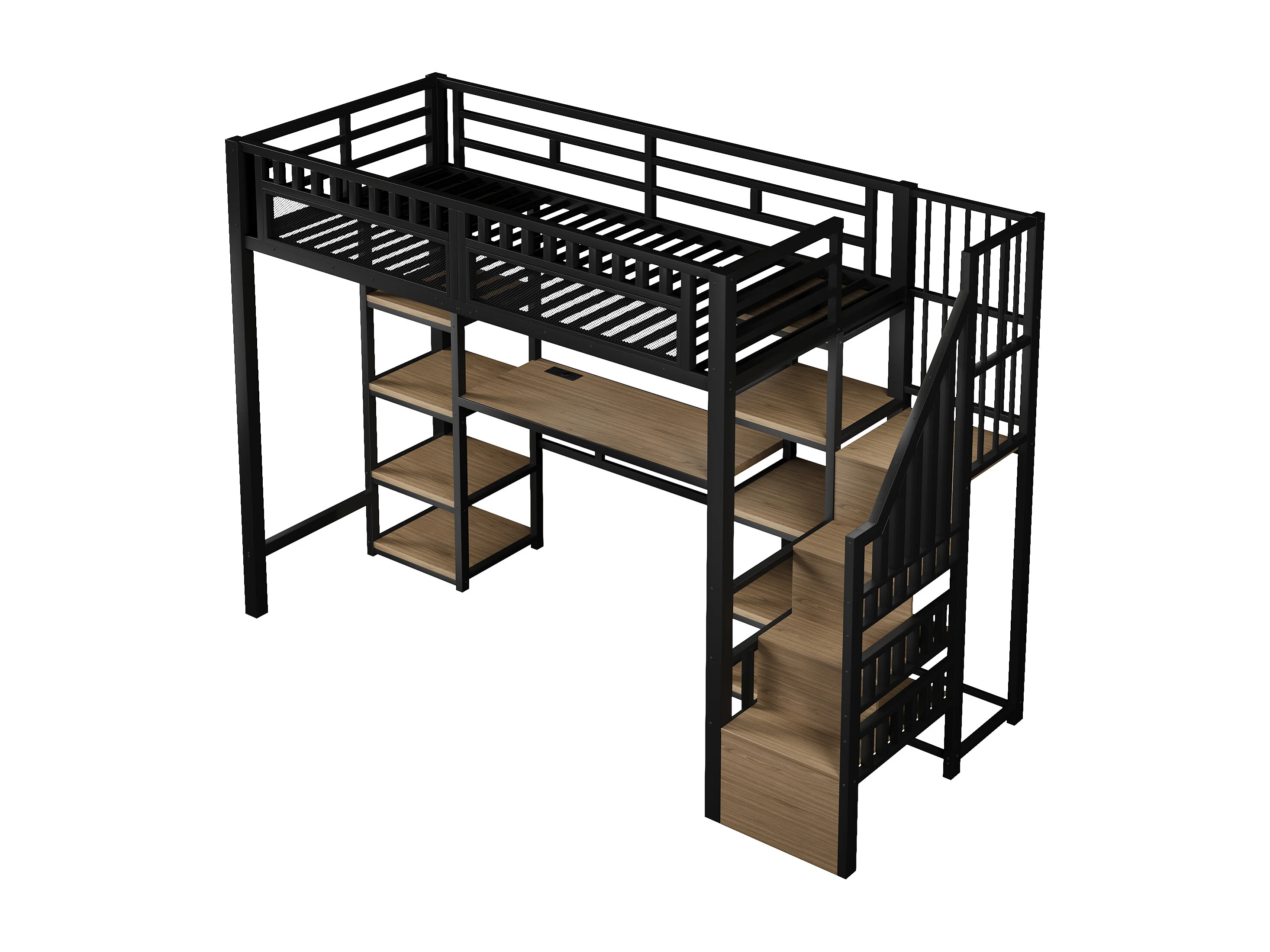 Letto a soppalco in metallo 90 x 200 cm con scrivania, illuminazione a LED e porte USB - Nero