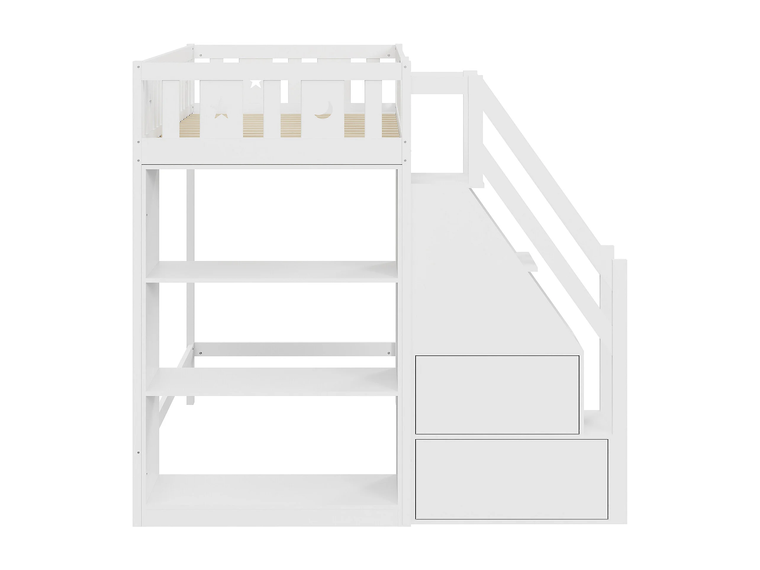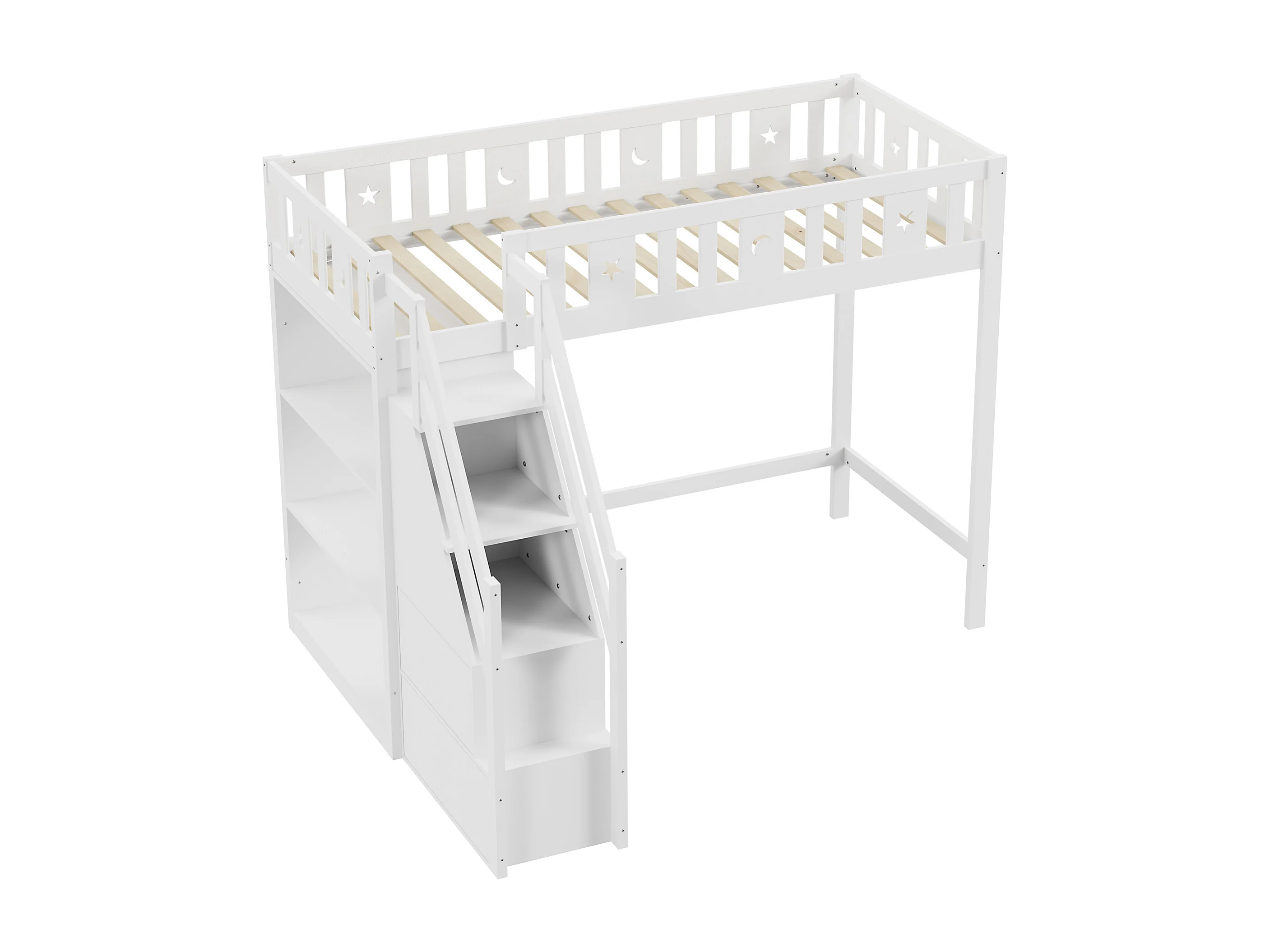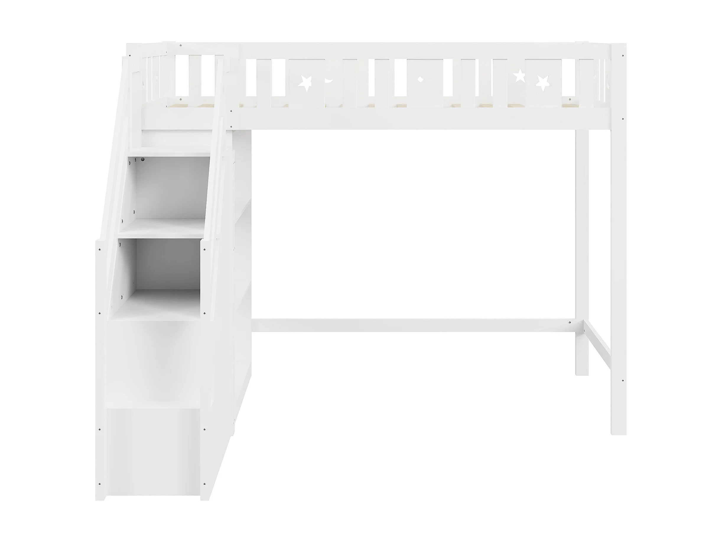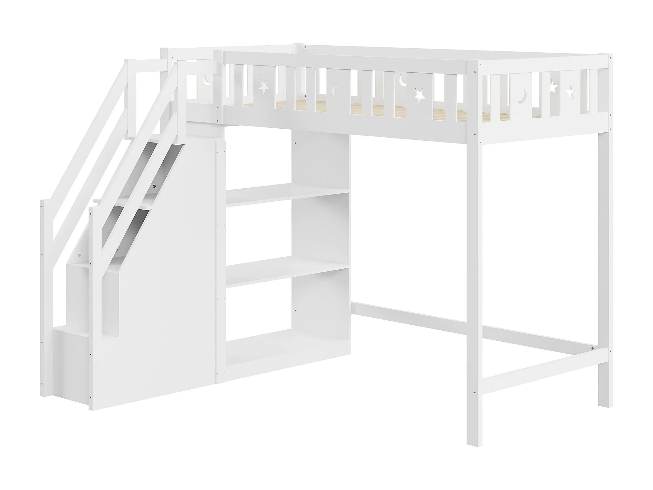 Letto a soppalco per bambini 90x200cm con scaletta contenitore e ripiani - Letto singolo in legno - Bianco