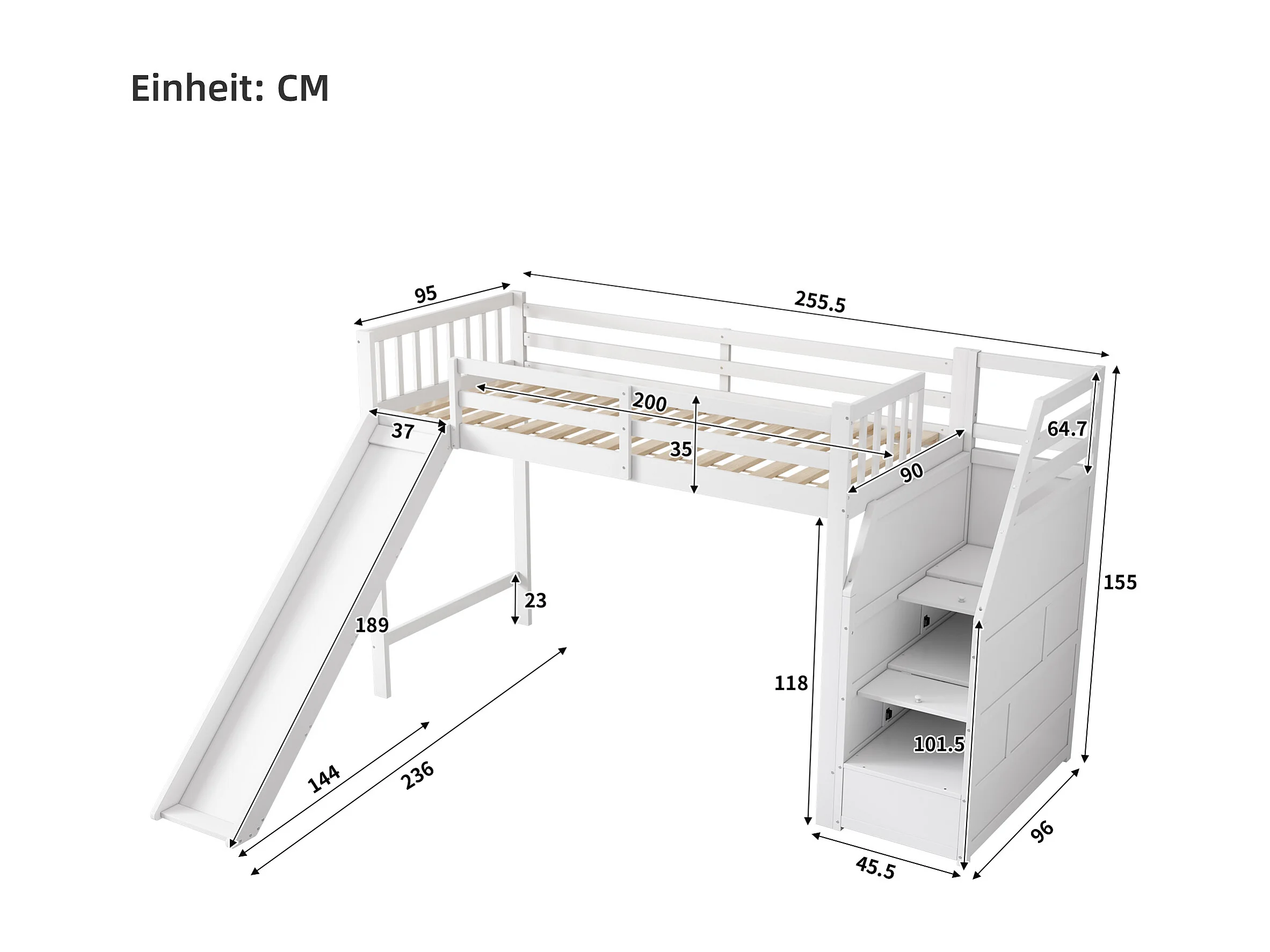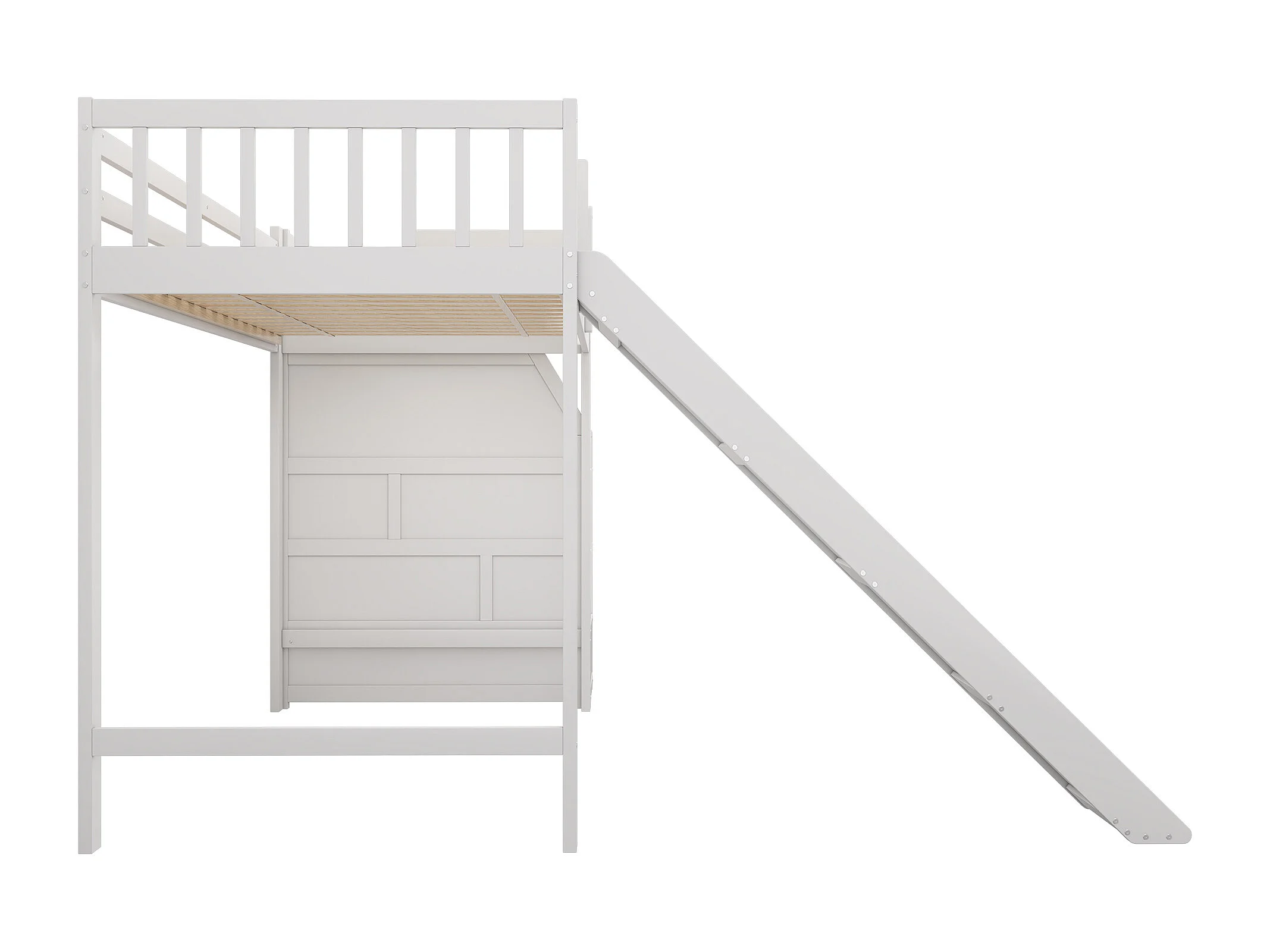 Letto a soppalco per bambini 90x200cm con scivolo e scaletta contenitore - Bianco (materasso non incluso)