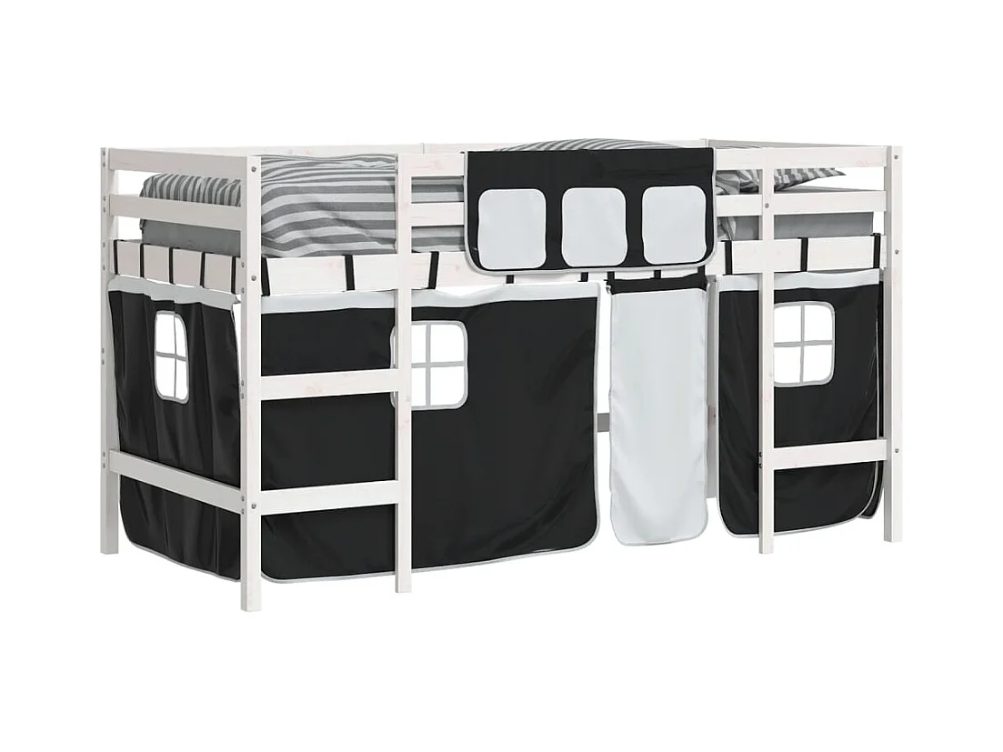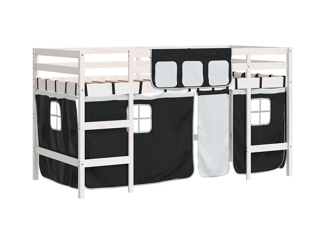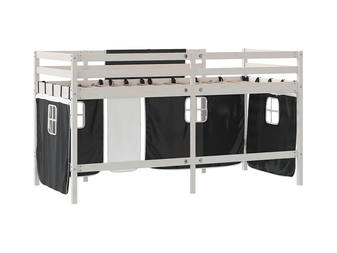 Letto a soppalco per bambini con tende senza materasso 90x190 cm