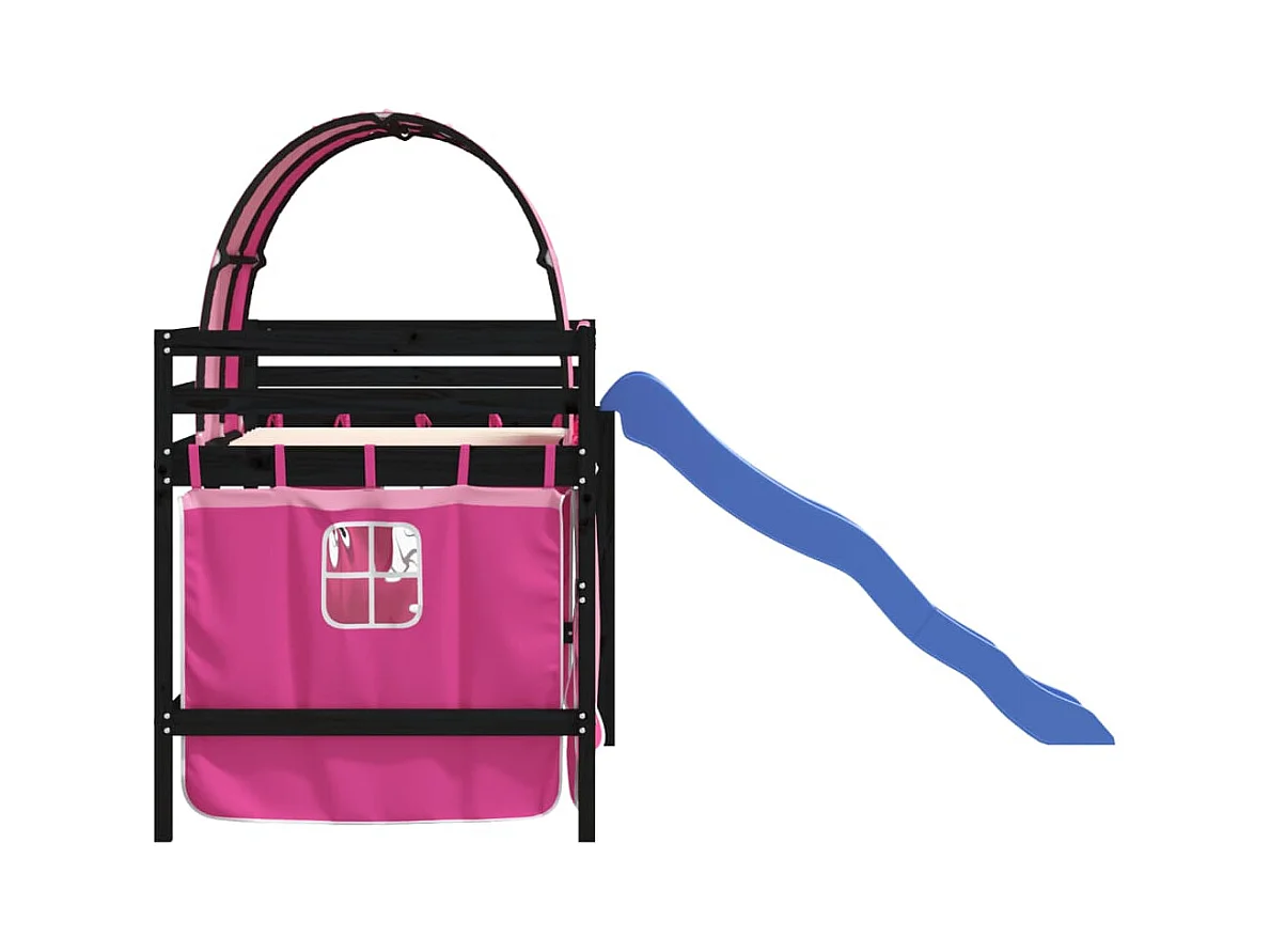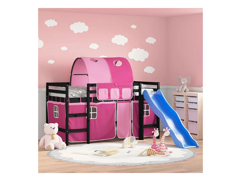 Letto a soppalco per bambini con tunnel senza materasso rosa 80x200 cm