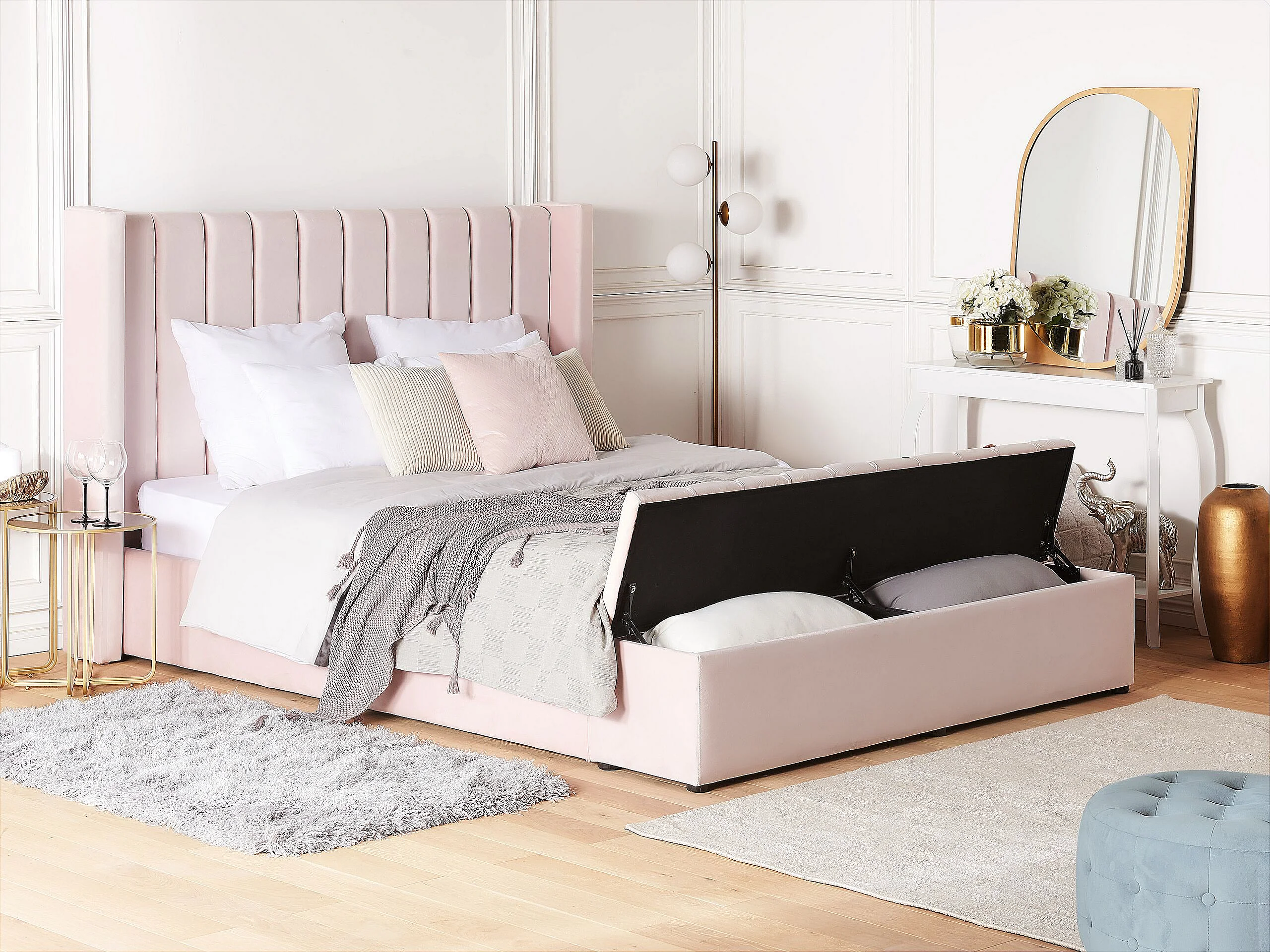 Letto ad acqua con panca contenitore Velluto NOYERS 180 x 200 cm Rosa pastello