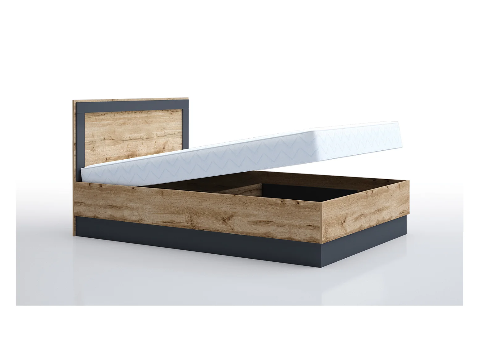 Letto angolare a una piazza e mezza con vano contenitore 190x75 rovere e antracite LG9