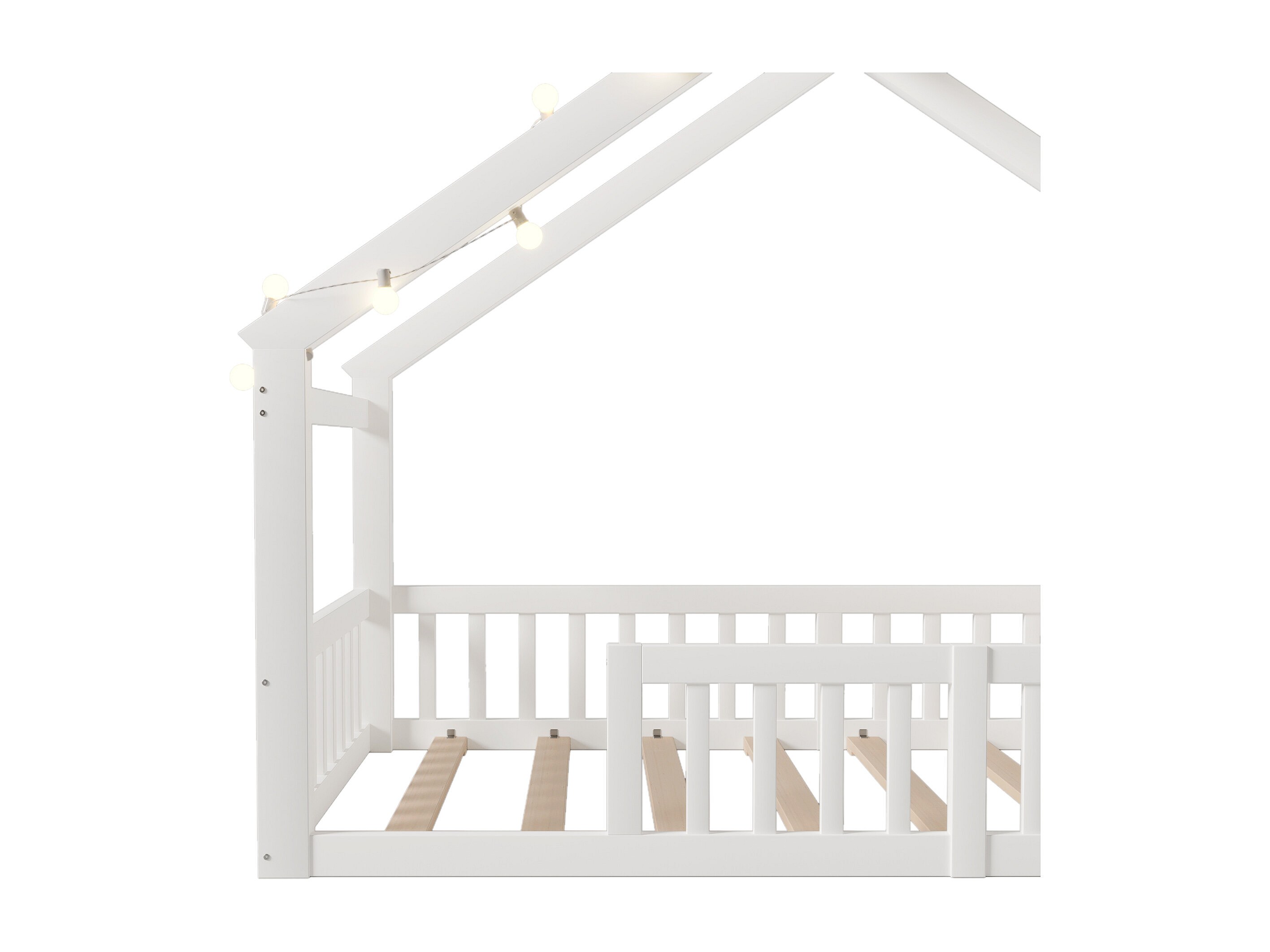 Letto cabina per bambini 90x200 cm - a forma di casetta - in legno di pino e MDF - Bianco