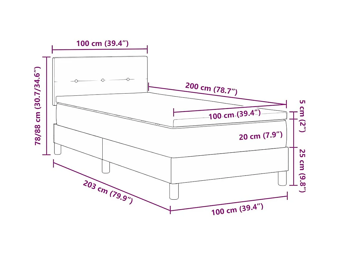 Letto box spring con materasso Grigio scuro 100 x 200 cm