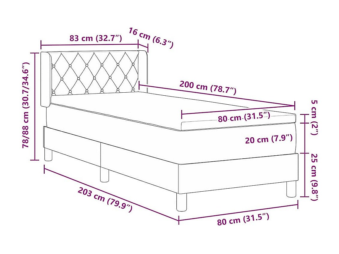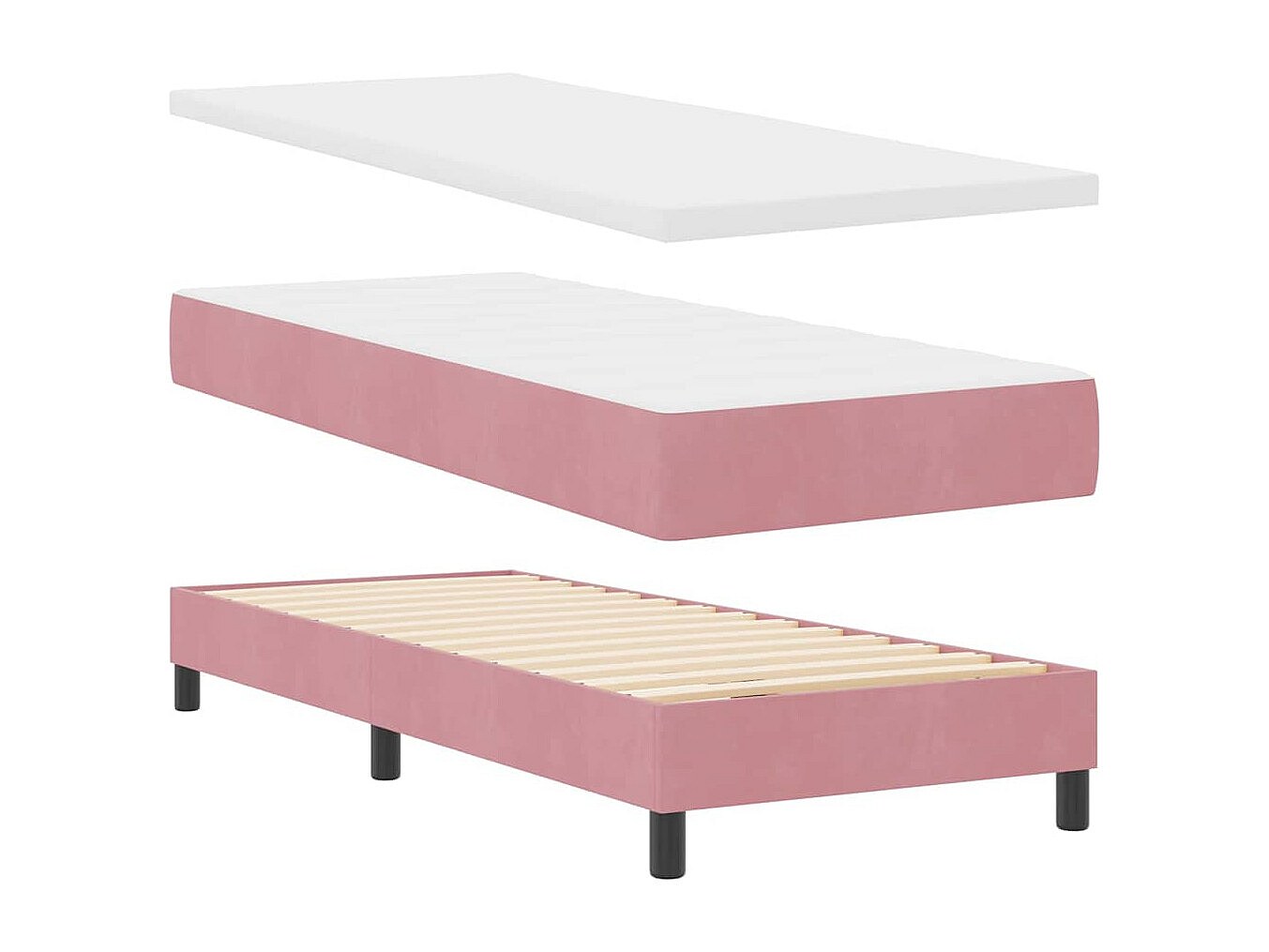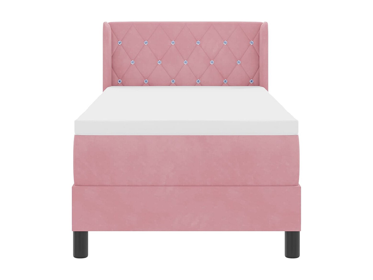 Letto Box Spring con Materasso Nero 100x200 cm in Velluto Rosa